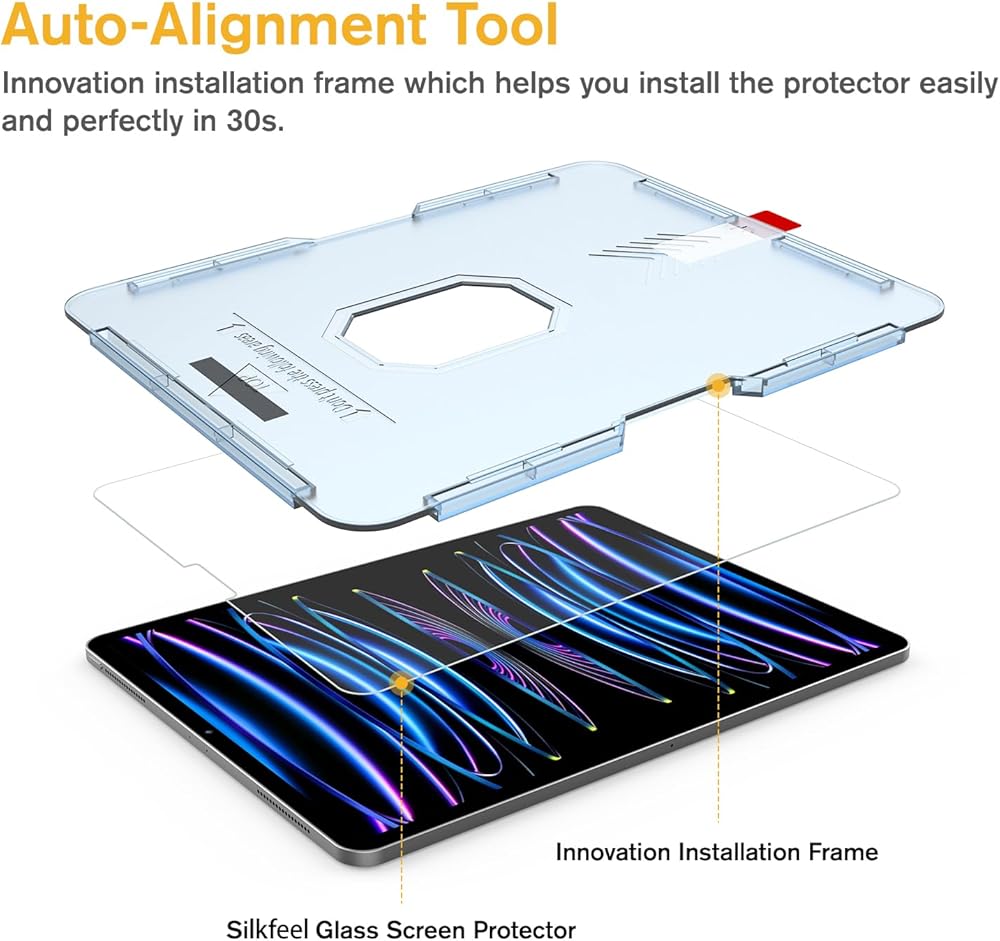 Silkfeel Glass Screen Protector Compatible With iPad Pro 11 Inch (2022/2021/2020/2018) & iPad Air 5th / 4th Generation (10.9 Inch), Touch Like Silk, Auto-Alignment Tool, EZ Kit