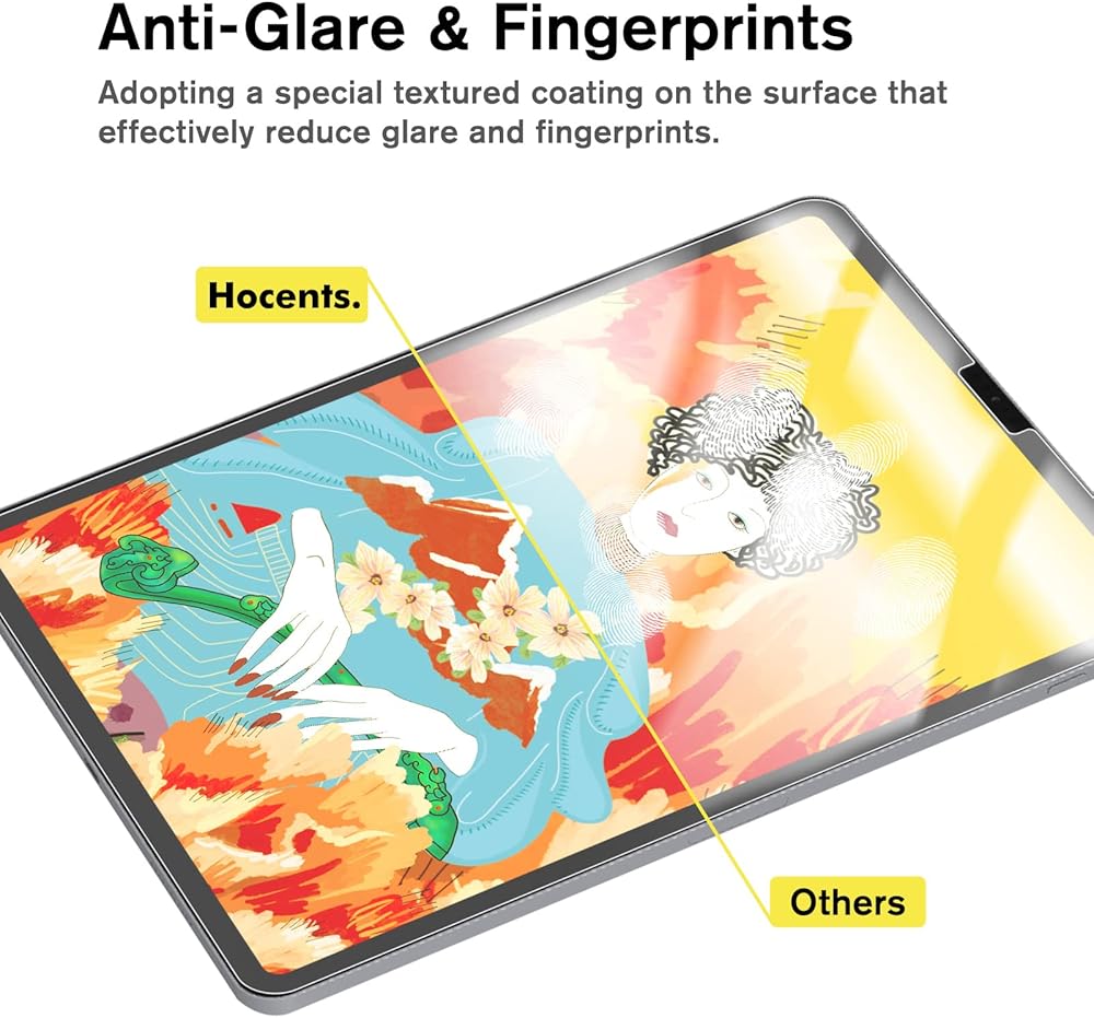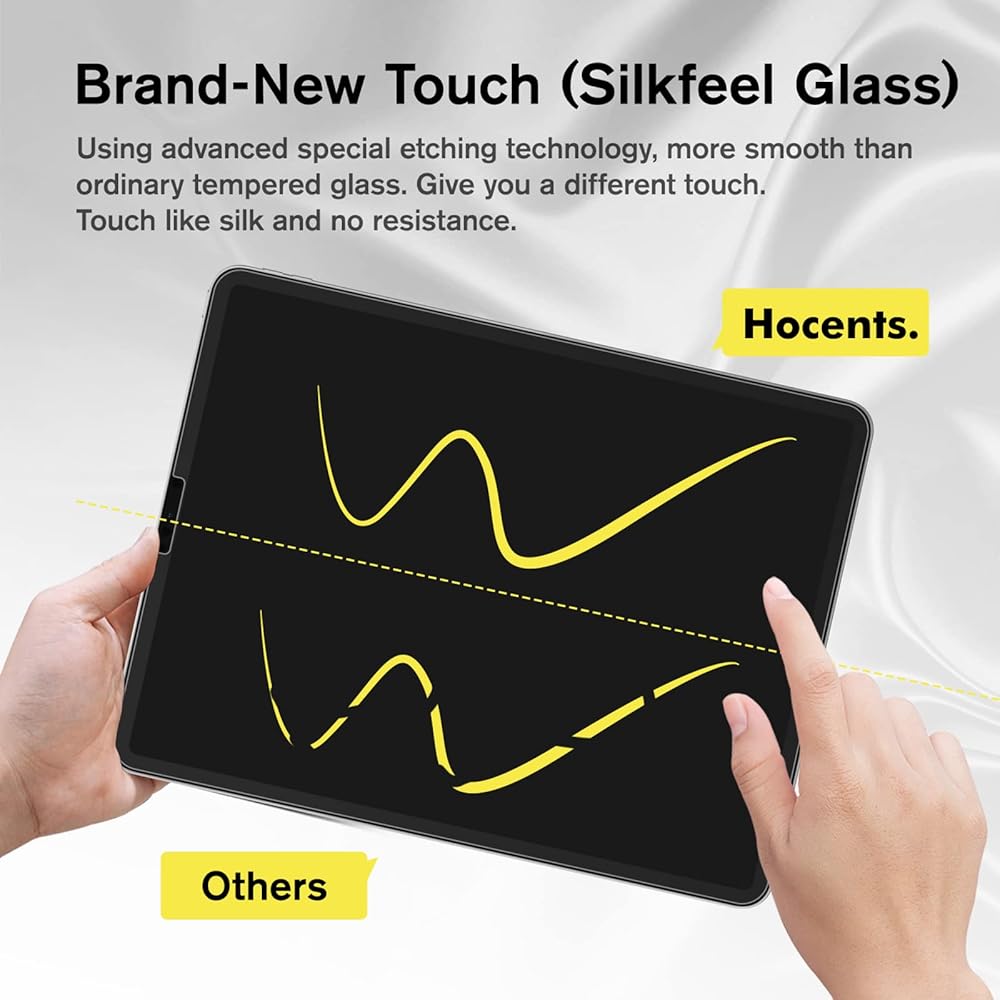[ANTI-GLARE & ANTI-FINGERPRINT] The silkfeel glass screen protector has a special textured surface, which can effectively reduce the stinging sensation caused by glare to the eyes. You can use it anytime and anywhere, even in the light, it will not affect your normal reading. The oleophobic coating on the surface reduces fingerprints and perspiration from daily use, allowing you to maintain a clean and comfortable screen for a more comfortable viewing experience.