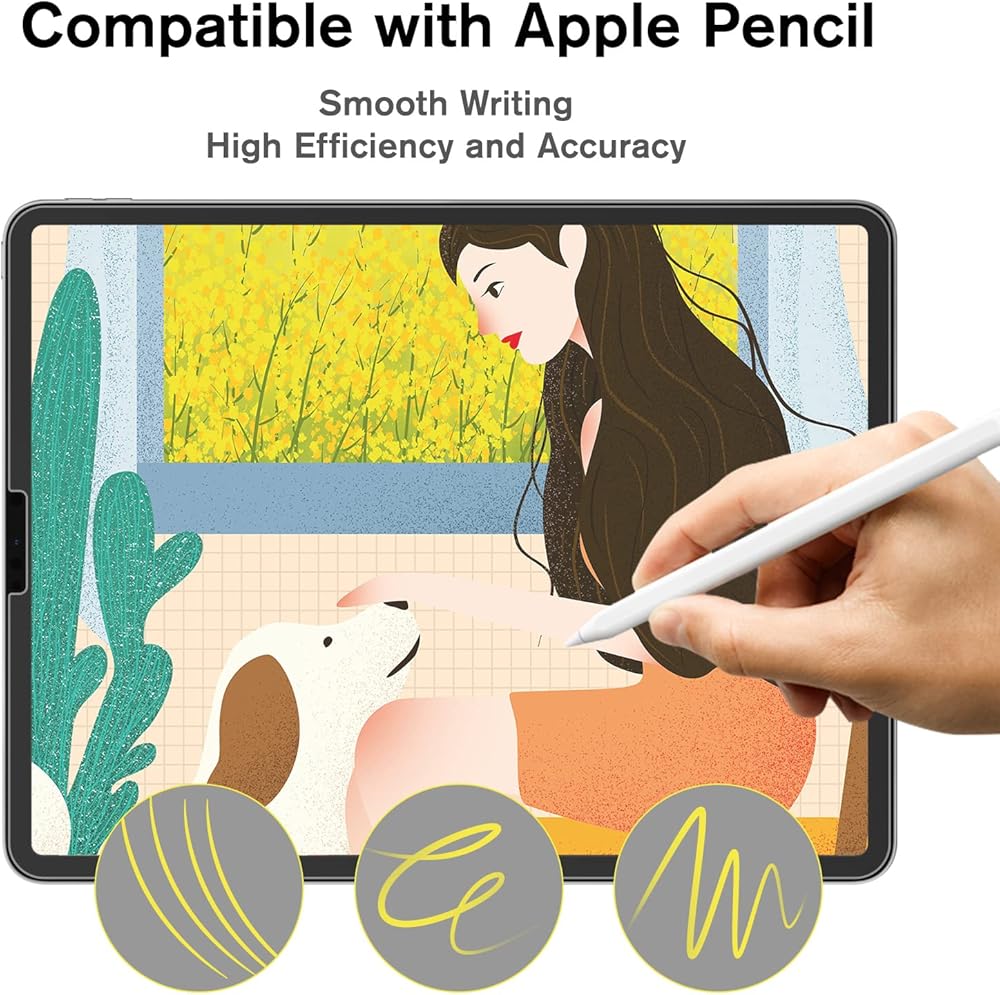 [DELICATE SILK FEELING] A special innovative technology is used to make the surface coating of iPad 10.2 screen protector very smooth. The main feature of ipad 9th generation screen protector is the silkfeel touch, smooth and comfortable without any resistance, bringing you a perfect touch experience. And it reduces the screen flash point without changing the screen color, providing a high quality HD color effect. Compatible with Apple Pencil, delicate and smooth lines for your creative help.