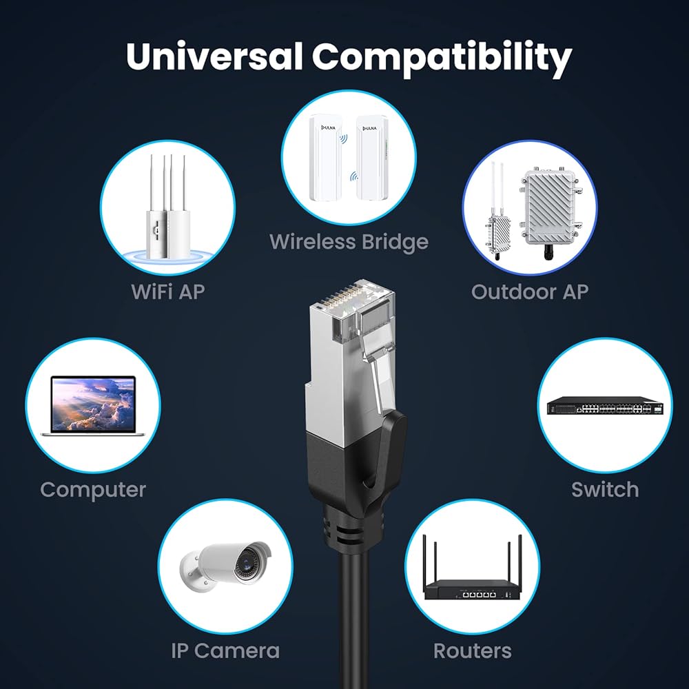 【Customer Service】The gigabit internet cable also works well with wireless bridge and POE power supply. The package comes with 1*66 ft cable,2*Gold Plated RJ45 connector and 10*Zip ties. If you have any problem, feel free to contact us, ULNA will do our best to help you solve the problem to your satisfaction.