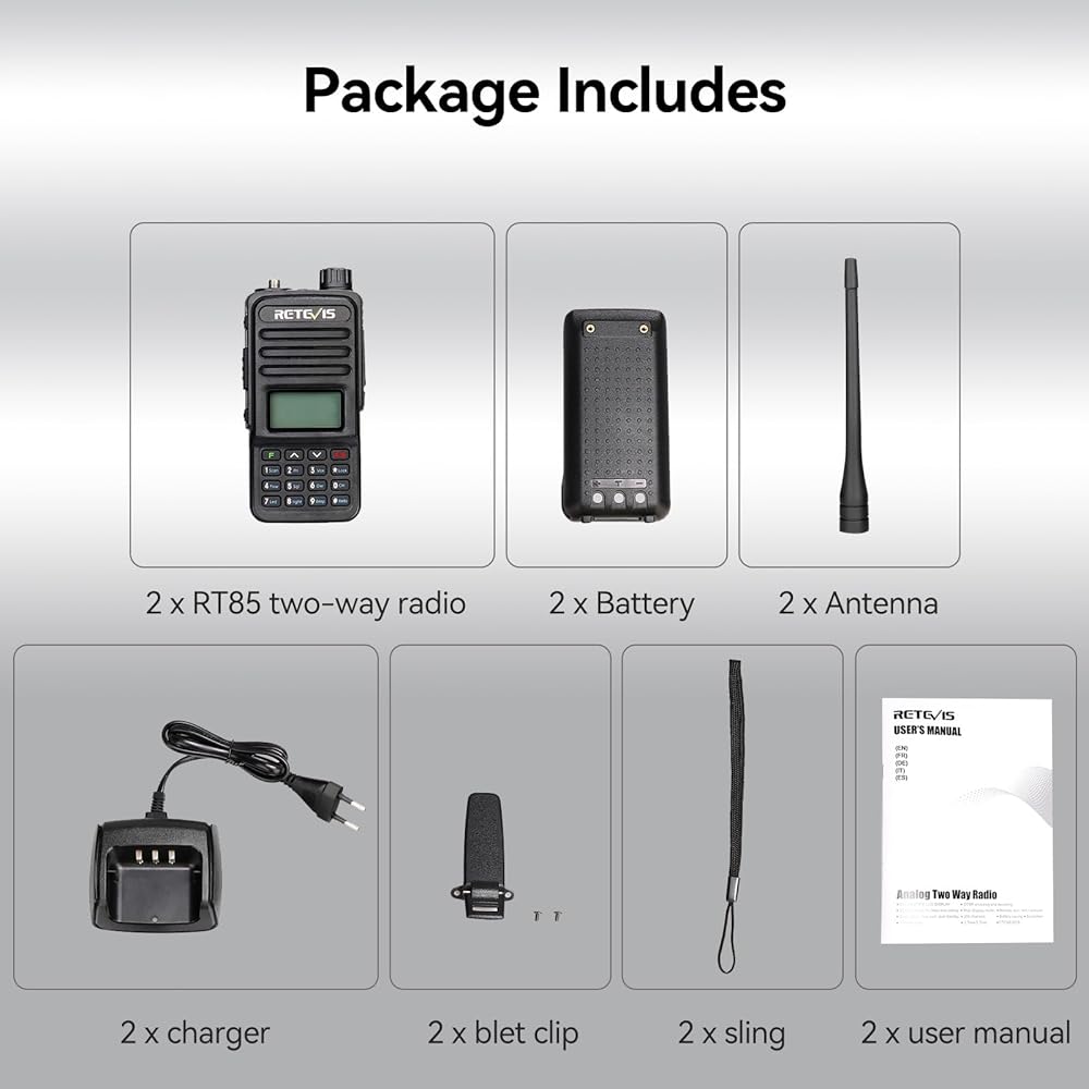 Retevis RT85 Handheld Ham Radio,Emergency Walkie Talkies Long Range,Dual Band,Built in VFO,200CH,VOX,FM,DTMF,Flashlight,1400mAh,Portable Two Way Radio for Survival Preppers Snowstorm Off-Grid(2 Pack)