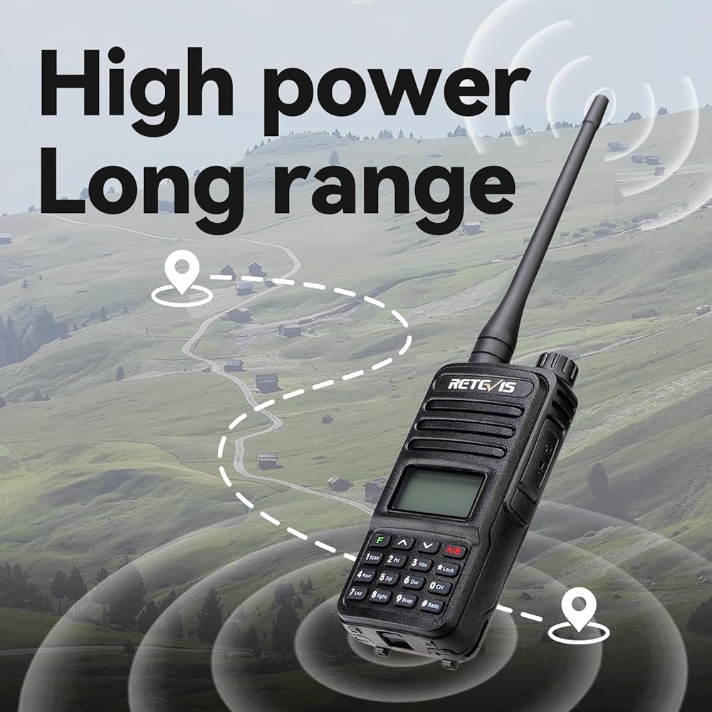 High and low power optional; high power design provide strong penetration; you can hit the repeater more easily; get a good signal and audio; walkie-talkie is great for hunting; outdoors; hiking
