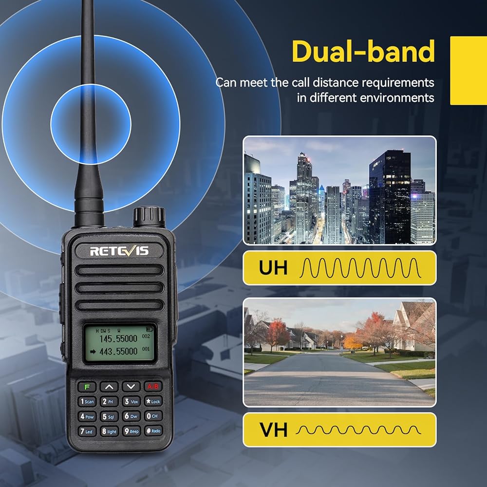 Dual-band display; dual frequency; dual-standby; A/B band independent operation; keyboard lock function could prevent accidental channel change; transceiver radio