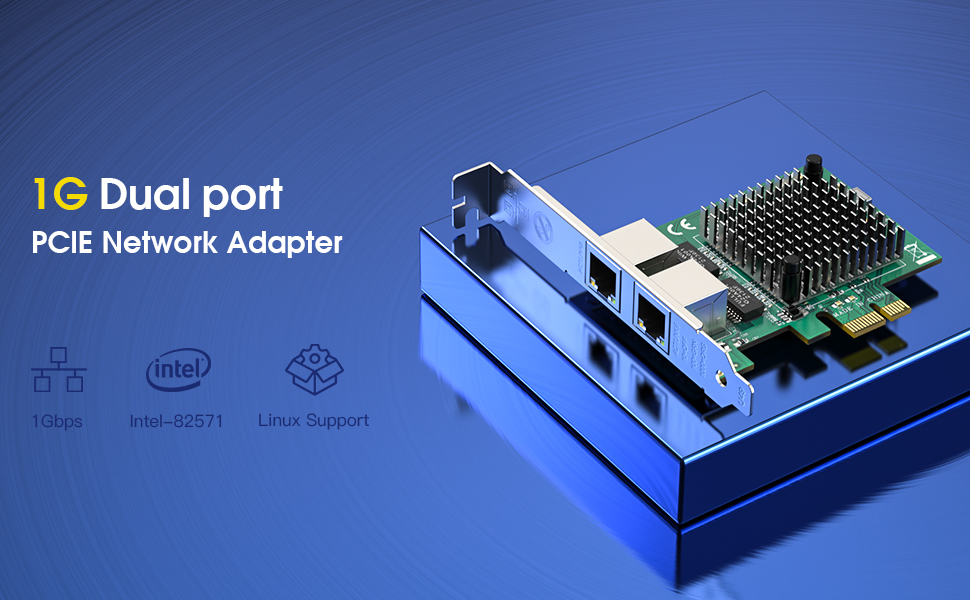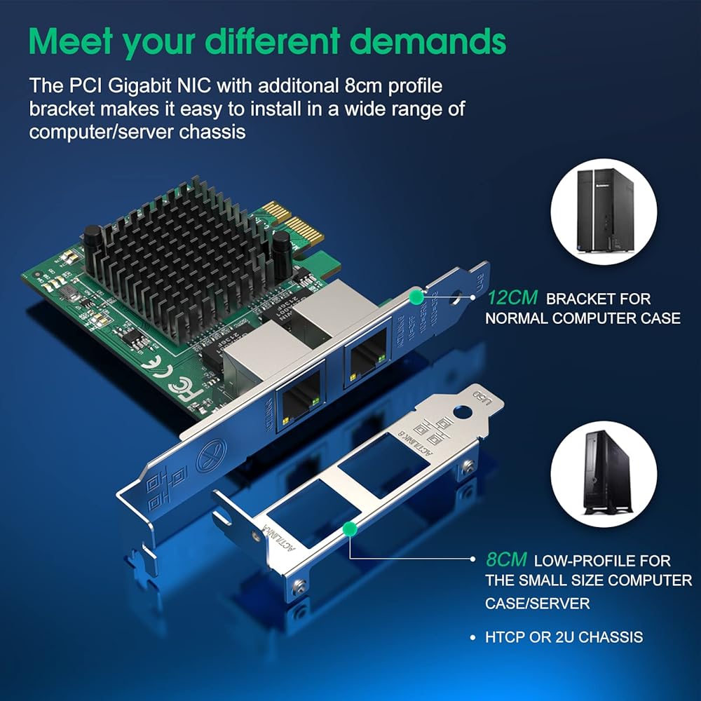 1G Gigabit Ethernet Converged Network Card, Dual RJ45 Port Server Network Card with Intel 82571 Chipset Ethernet Adapter Low Profile LAN NIC Card for Support PXE for Windows/Windows Server/Linux