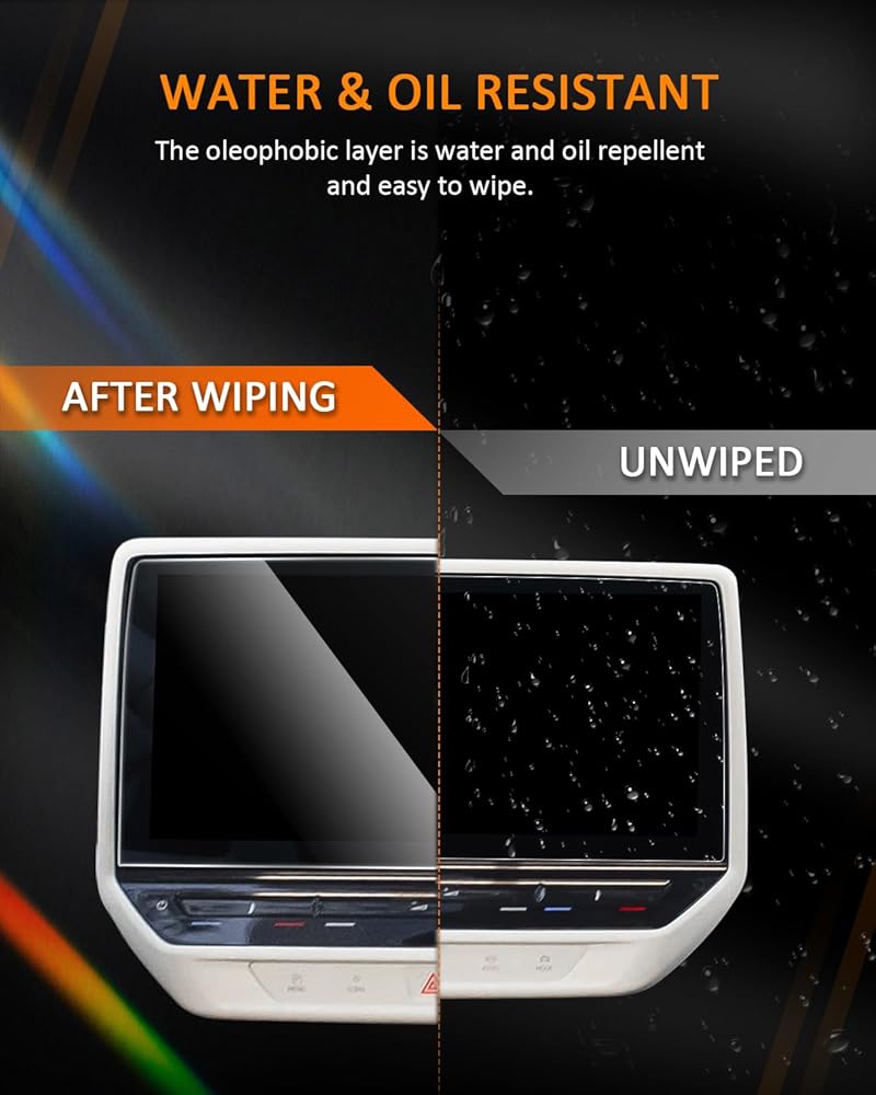 NECESSARY ACCESSORIES IN YOUR CAR: 9H hardness anti-scratch, anti-explosion, anti-glare, UV filtering, auto-absorbing, keep your touch screen free from dust, scratches, oil, water and fingerprints etc.