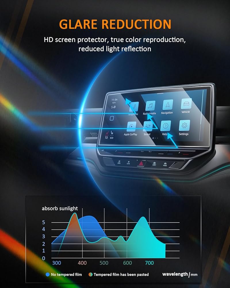SPECIALIZED CAR SCREEN PROTECTOR: Perfectly compatible with the 2021 2022 2023 Volkswagen ID.4 ID4 Standard, Pro, S, Pro S, S Plus 12" audio multimedia infotainment display touchscreen.