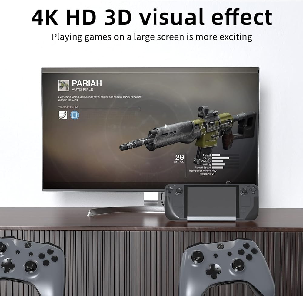[Steam Deck Accessories with Strong Compatibility]: The rog ally dock designed for Steam deck, and also compatible with other devices built-in USB C port, such as ROG Ally,Switch,laptop,iPad,Android,phones,etc.Steam deck docking station redefines your Steam Deck gaming experience, allows you to project games to a larger display when you are tired of using thumbsticks or trackpads, let you start new gaming journey with your friends, family and colleagues.