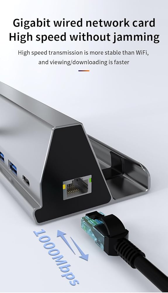 [RJ45 1000M Gigabit Ethernet & 5Gbps USB 3.0 Port]: This Gigabit USB-C to Ethernet dock can reach up to 1000Mbps data transfer speed, giving a full play to the performance of your network, Backward compatible with 100Mbps/10Mbps RJ45 LAN.The two USB 3.0 ports with data transfer rates of up to 5Gbps. Connect multiple peripheral devices like (wireless)keyboard/mouse, hard drive, USB flash, and other devices!