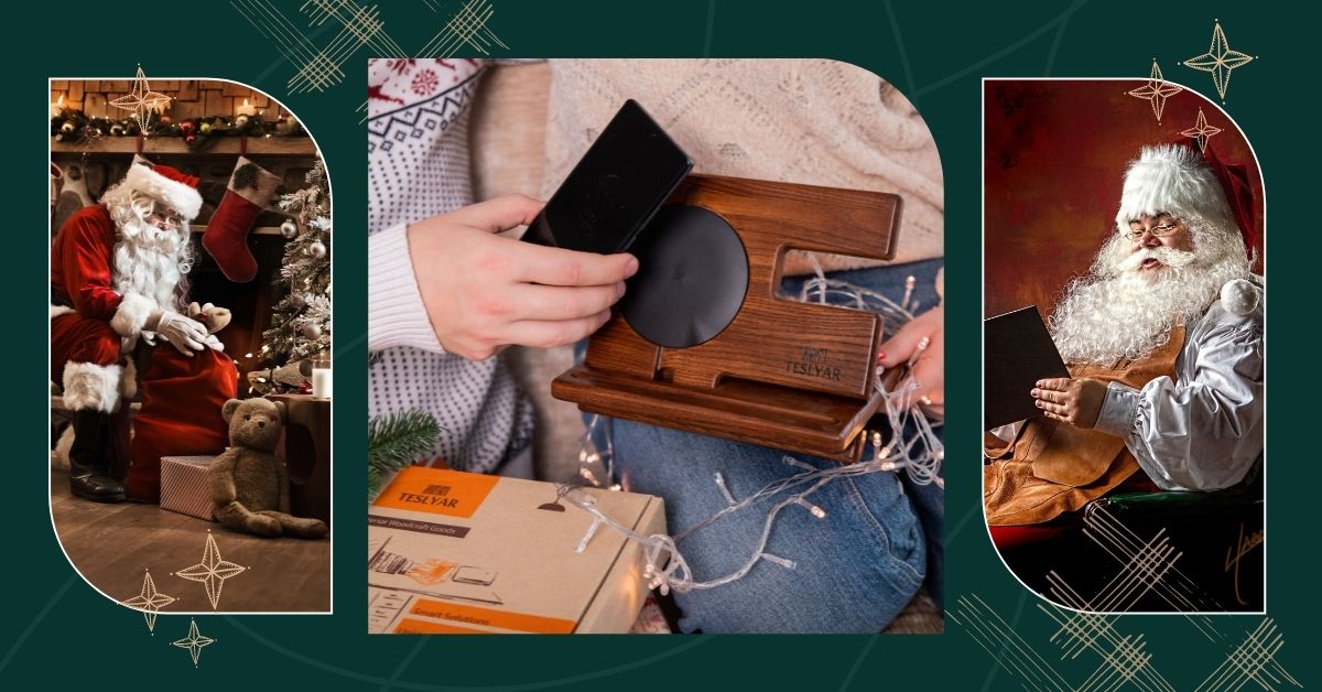 TESLYAR Gifts for Men Wood Phone Docking Station Gifts for him Stand Organizer Men Husband Wireless Charging Pad Slim Birthday Nightstand Purse Tablet Compatible with All Qi Devices