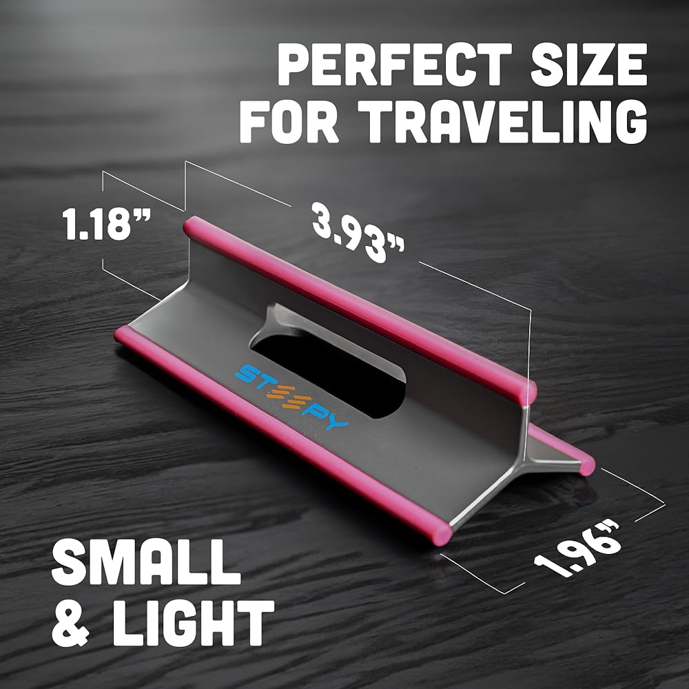 SMALL & MINIMALIST - Steepy laptop tilt wedge is a low laptop stand made out of strong and durable recycled plastic, with rubber edges to provide the sturdy and stable support your device needs and prevent it from sliding or skidding.