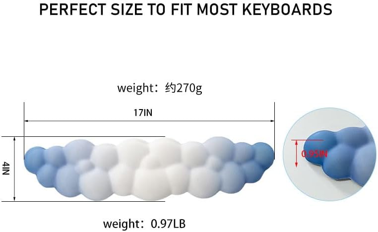 【Relieve fatigue】 Cloud shape memory foam keyboard wrist rest is not only beautiful but also can reduce the pressure on the wrist for people who use the computer for a long time, provide support point, is a perfect desktop companion.