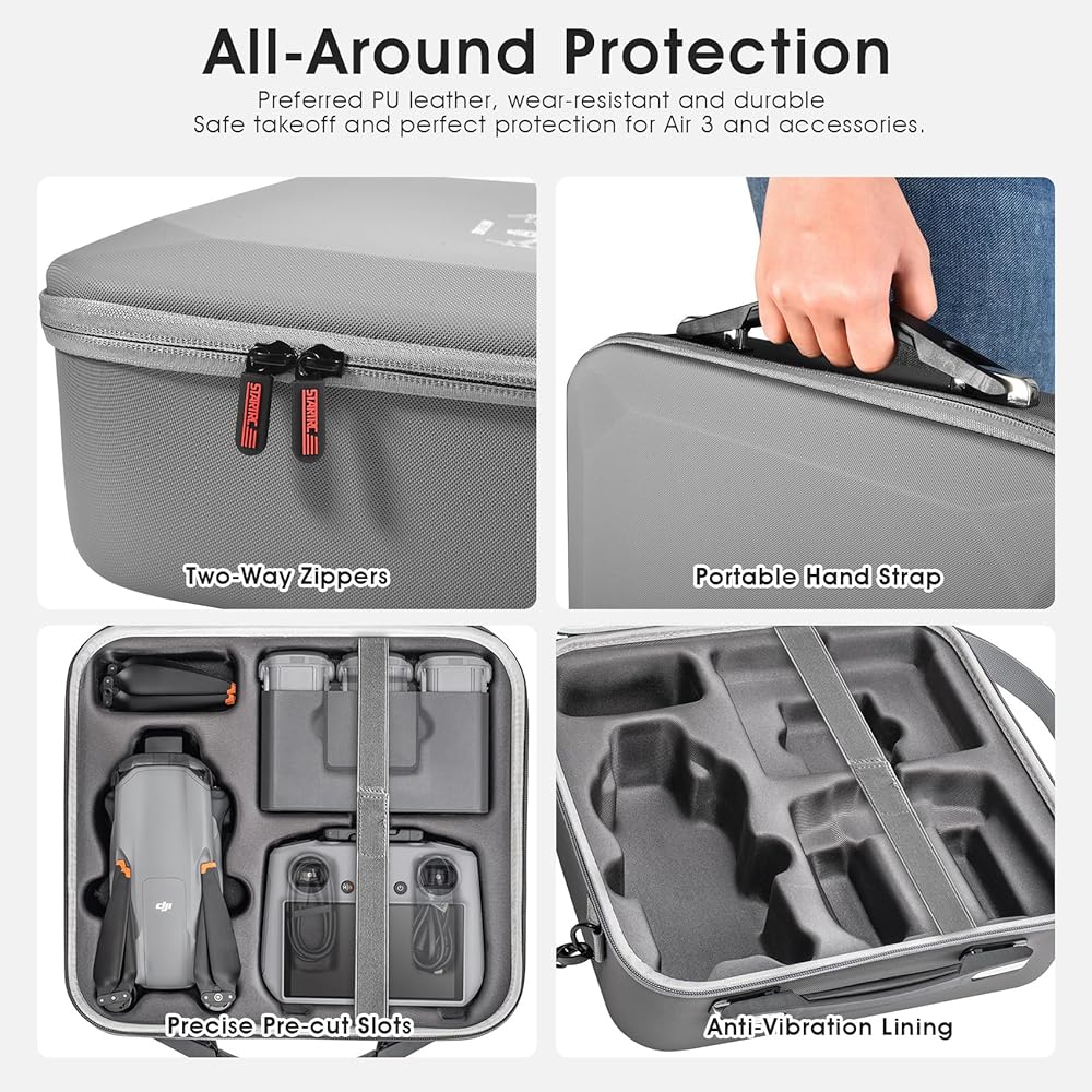 EASY TO CARRY:DJI Air 3 travel case not only offers superior protection, but is also designed with key elements of portability. Equipped with a non-slip grip and shoulder strap, you can easily carry your drone and accessories without worrying about getting tired.