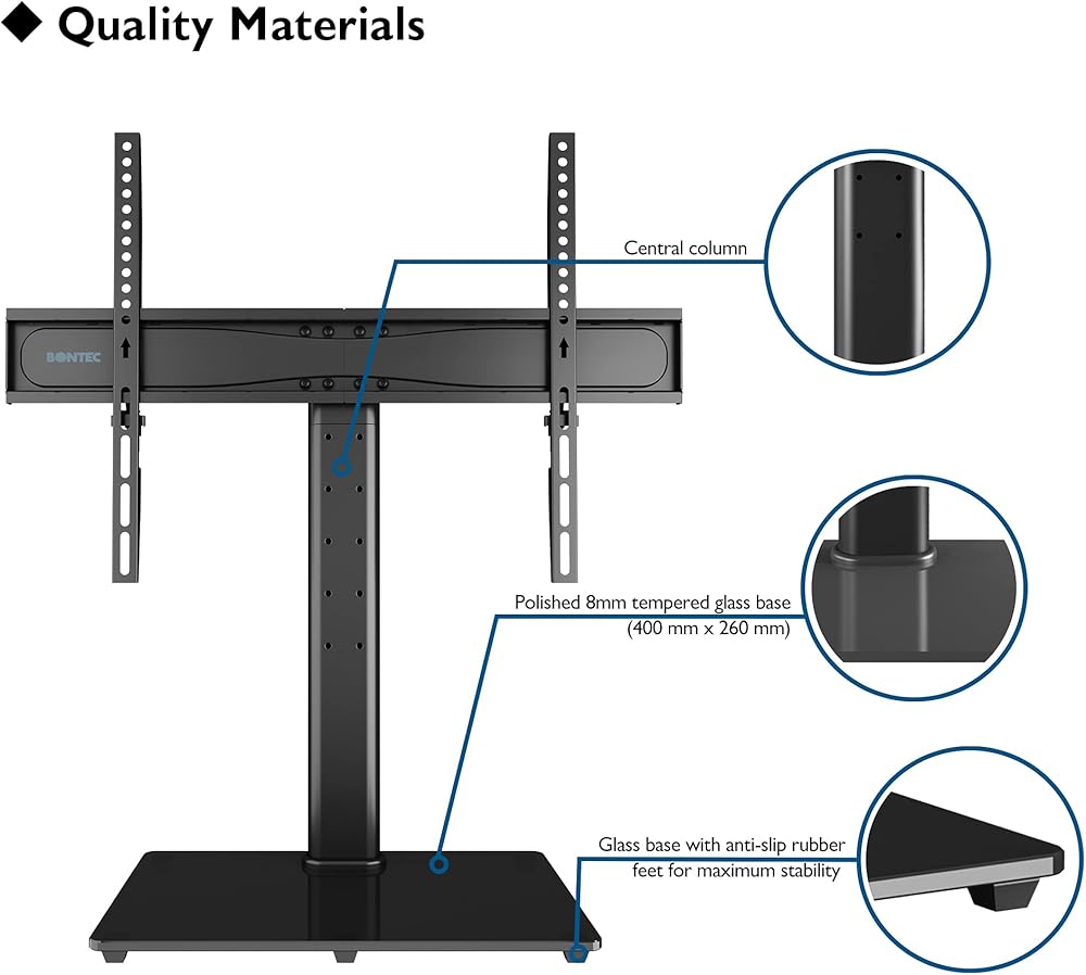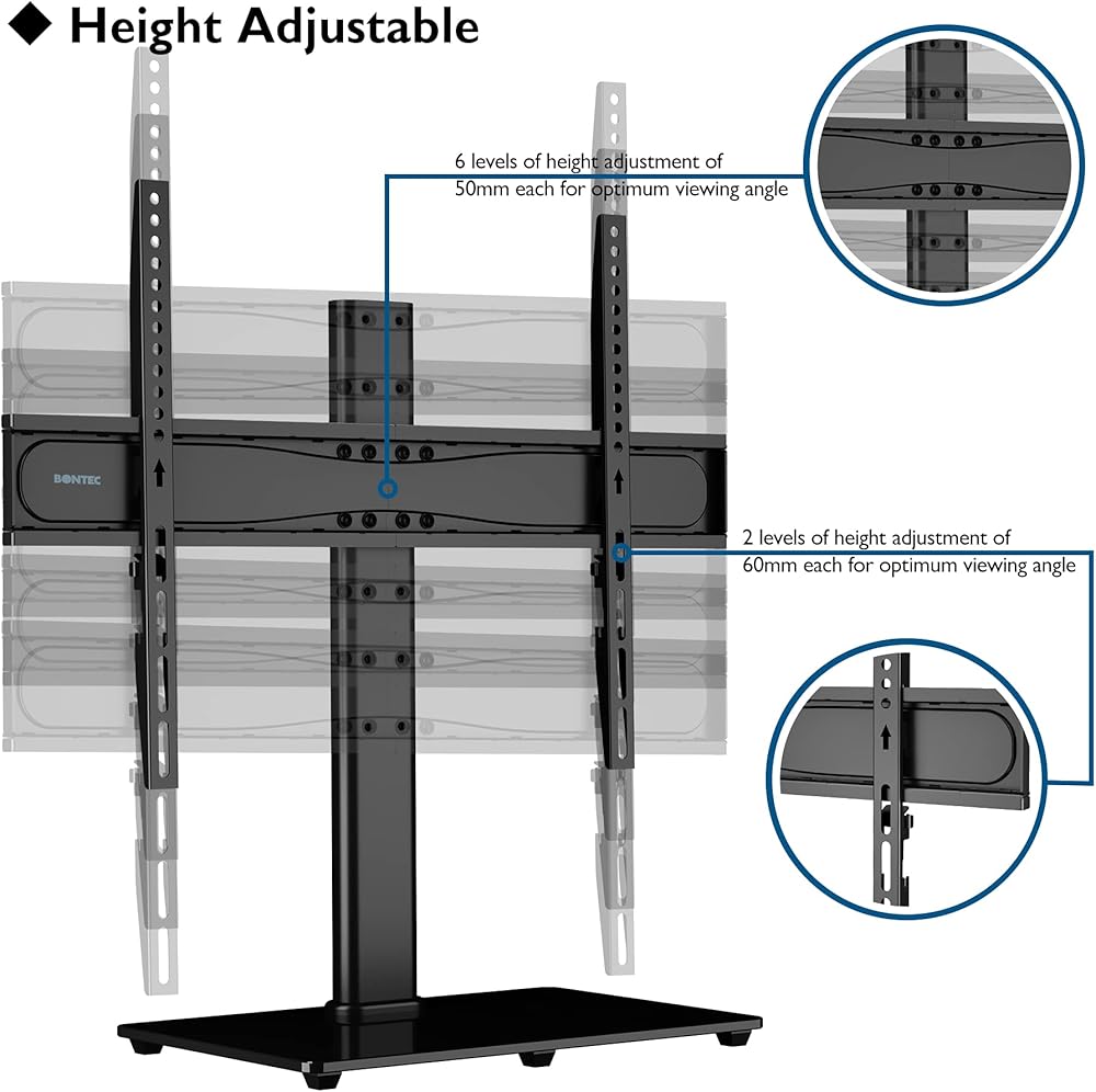 BONTEC Universal TV Stand Base, Table Top TV Stand for 32-65 inch LCD LED OLED TVs, 6 Levels Height Adjustable TV Mount Stand, Tempered Glass Base Holds up to 99lbs, Max.VESA 600x400mm