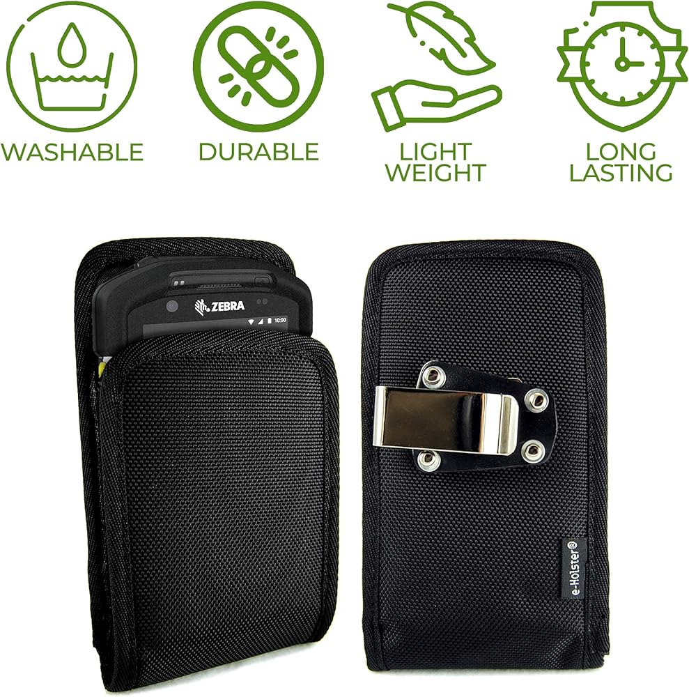 Rugged and Comfortable - Our scan gun holster is made of durable ballistic nylon and is built to last. It comes with a military-grade, heavy-duty, rotating steel belt clip, and expandable elastic sides for a snug secure fit every time. Includes an elastic pen loop for stylus pens or ink pens.