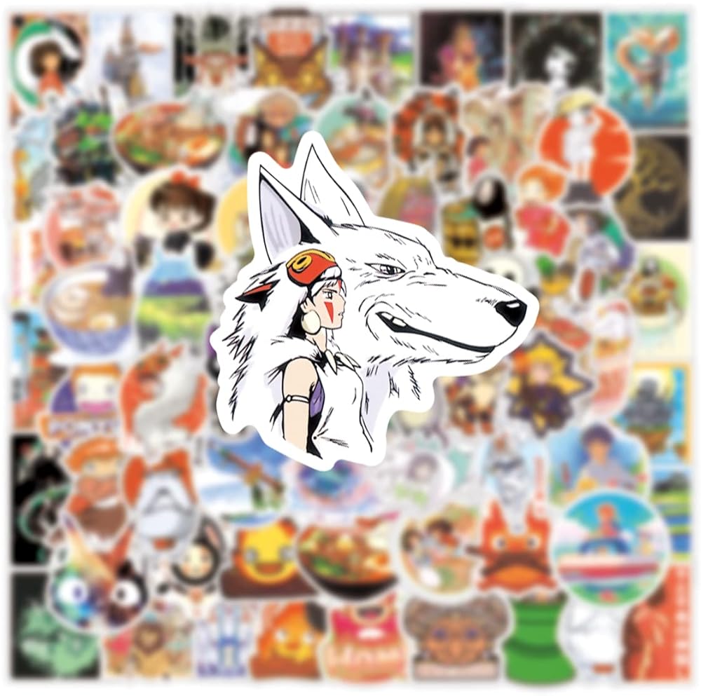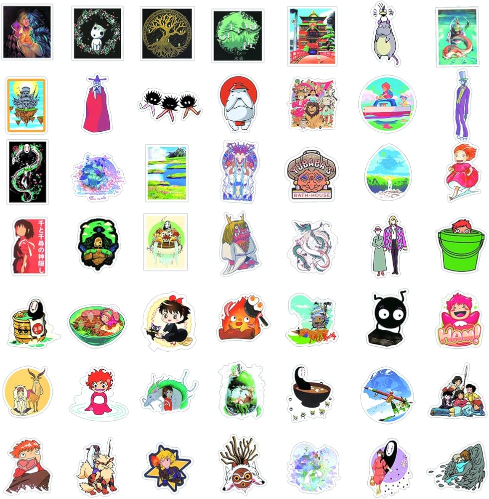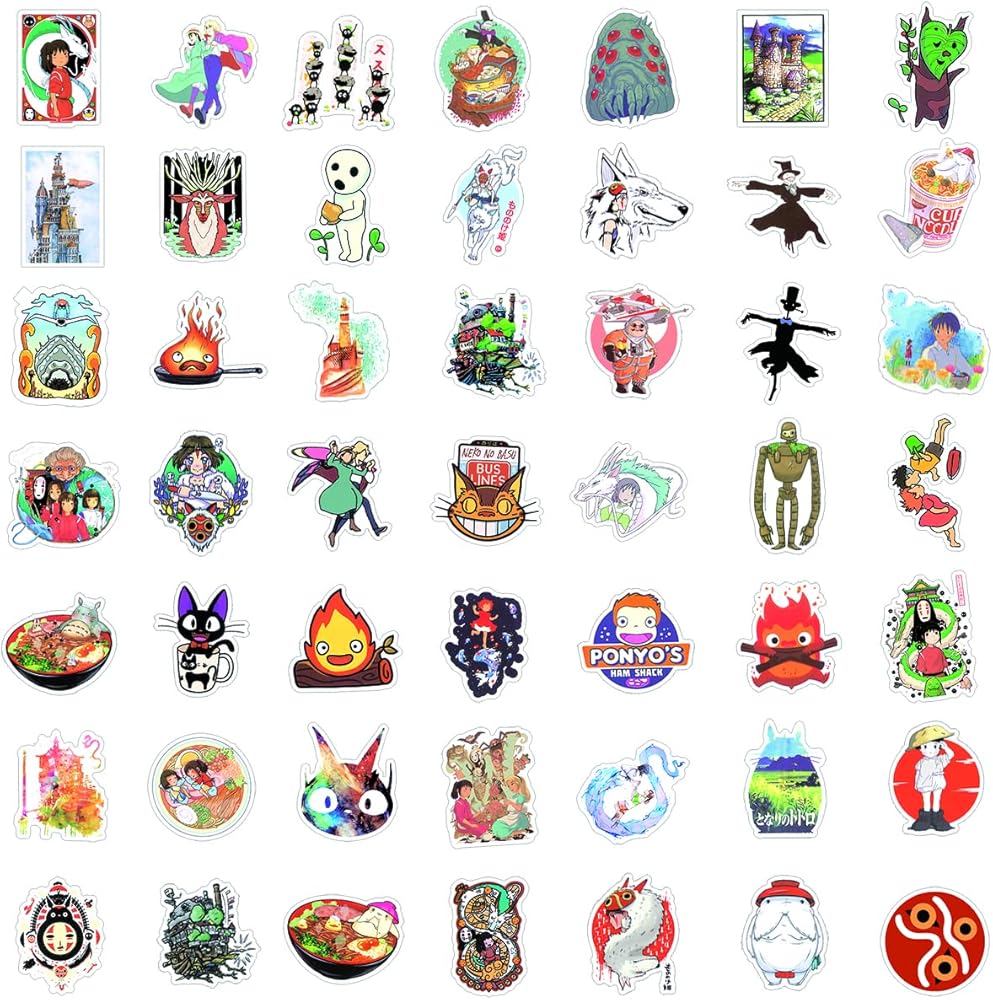 100Pcs Hayao Miyazaki Studio Ghibli Stickers Pack, Anime Cartoon Vinyl Waterproof Sticker for Water Bottle,Skateboard,Laptop,Phone,Scrapbook,Journaling,Car Decals Gifts for Kids Teens Adults