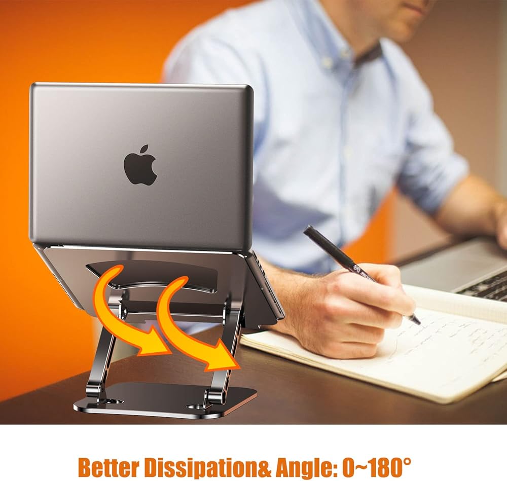 【Wide Compatibility】: The laptop holder is designed with parallel bars for increased stability that allows it to support 17.6 pounds. The adjustable laptop stand fit for all 10" 11" 12" 13" 14" 15" 16" laptops, compatible with MacBook, MacBook Pro, MacBook Air, Microsoft Surface, HP, Dell,Google computer and more.