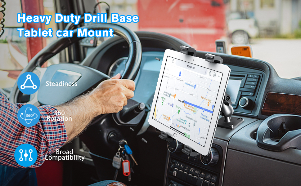PLDHPRO iPad Holder for car Heavy Duty Drill Base, Compatible with iPad/iPad Mini Samsung Galaxy (All 7" - 11.5") Tablets, Tablet Mount for Desk/Car/Wall/Truck/Commercial Vehicles Dash