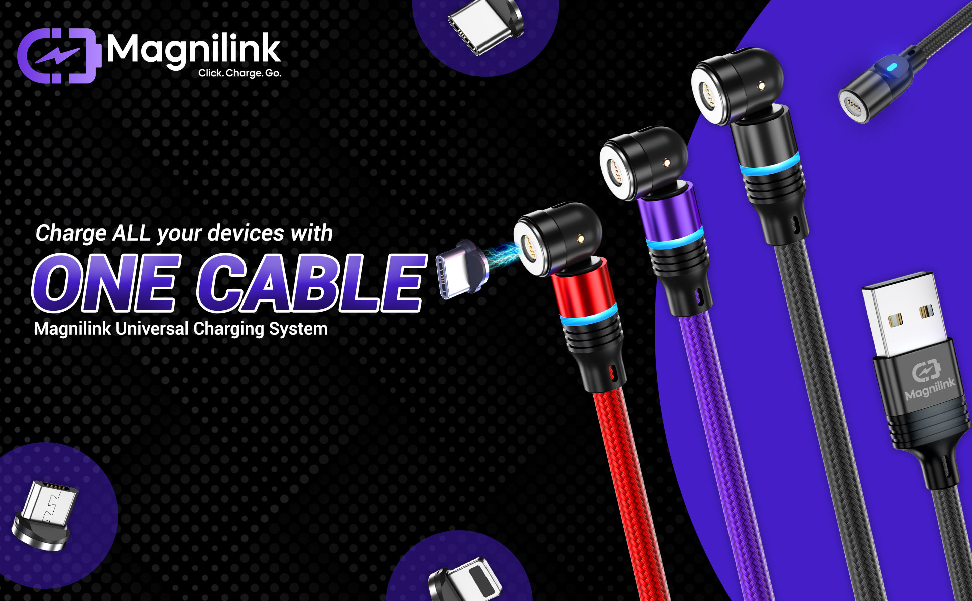 تجربة شحن مثالية - سيتيح لك كابل الشحن العالمي الخاص بنا شحن أي جهاز USB بفضل تقنية الرأس المغناطيسي.