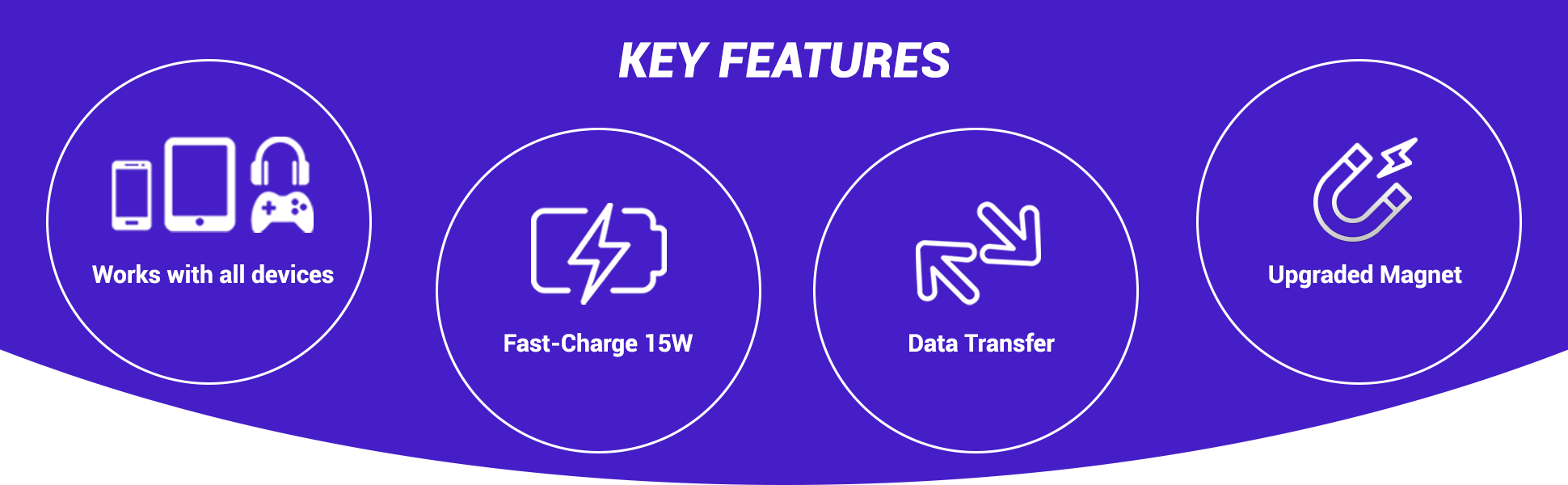شحن بلا حدود - أصبحت كيبلات USB المغناطيسية من الجيل الأخير جاهزة للشحن السريع (18 واط / 3 امبير) ويمكنها نقل البيانات إلى اللاب توب أو في سيارتك.