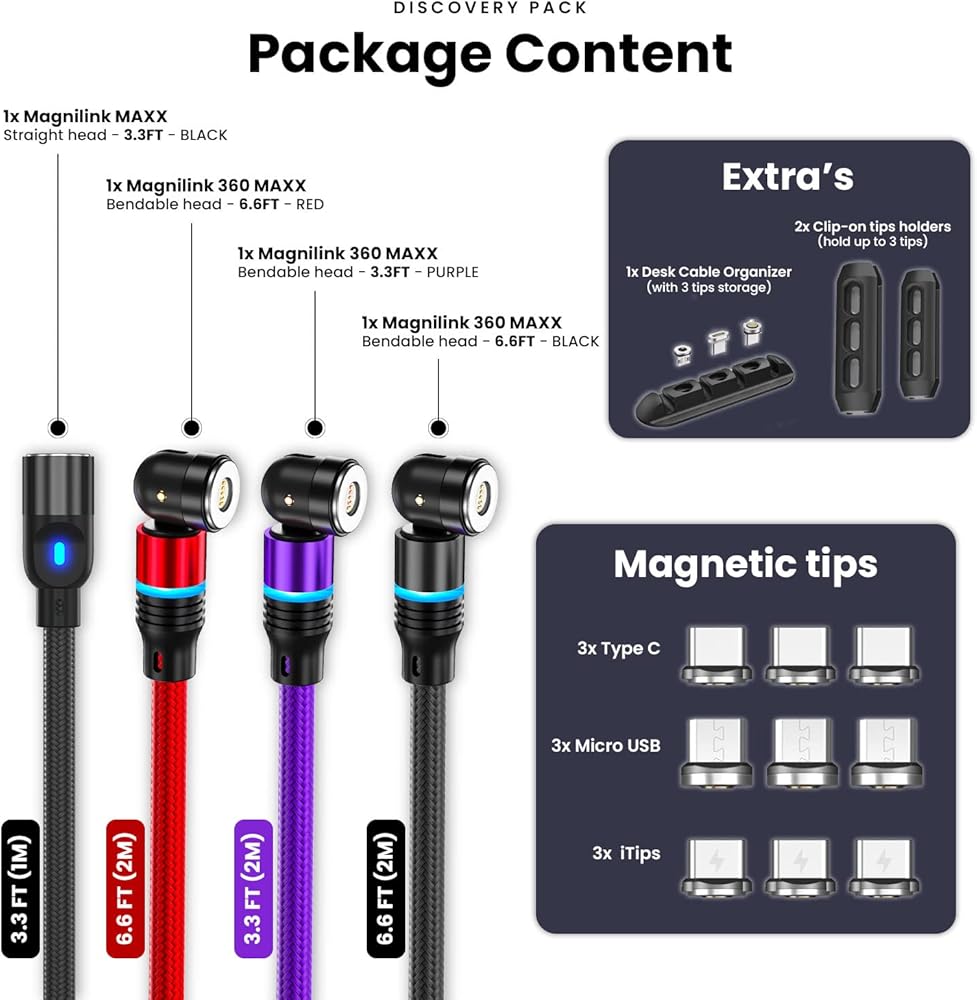 4 كابلات الأكثر مبيعًا لدينا - تأتي مجموعة ديسكفري هذه مع 4 شواحن مغناطيسية الأكثر شعبية على الإطلاق، و9 رؤوس و3 حوامل رؤوس سهلة الاستخدام، مما يجعلها الأفضل مقابل نقودك!