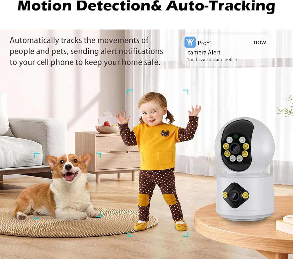 【24/7 Recording】 Our 360 dog cameras makes your home staying in control and never missing a moment. Our inside cameras security will track the motion if any motion is detected, and you will get instant alerts on your smartphone when monition or Sound is detected even if at night. Utilize patrol mode for versatile home security, from pet monitoring to a reliable nanny cam. Enjoy pace of mind day and night with our wireless indoor cameras.