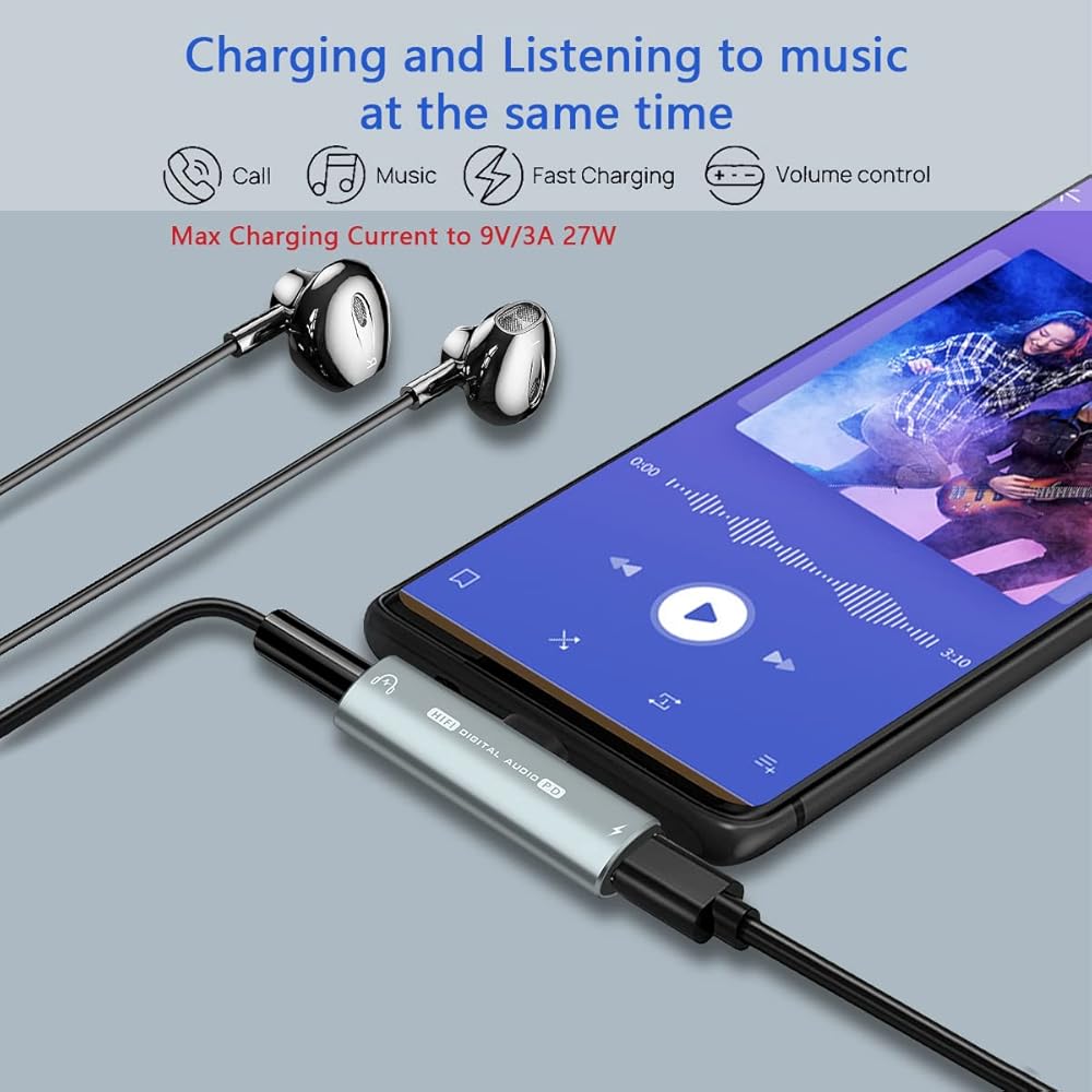 USB C to 3.5mm Audio Headphone Adapter and Charger, 2 in 1 USB C Headphone Jack HiFi DAC with 27W Fast Charging Dongle Adapter Compatible with Galaxy S23 Ultra/S22+/A53/Note 20, Pixel 7/7Pro/6/6Pro/5
