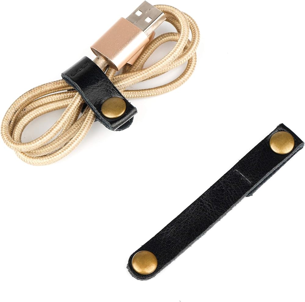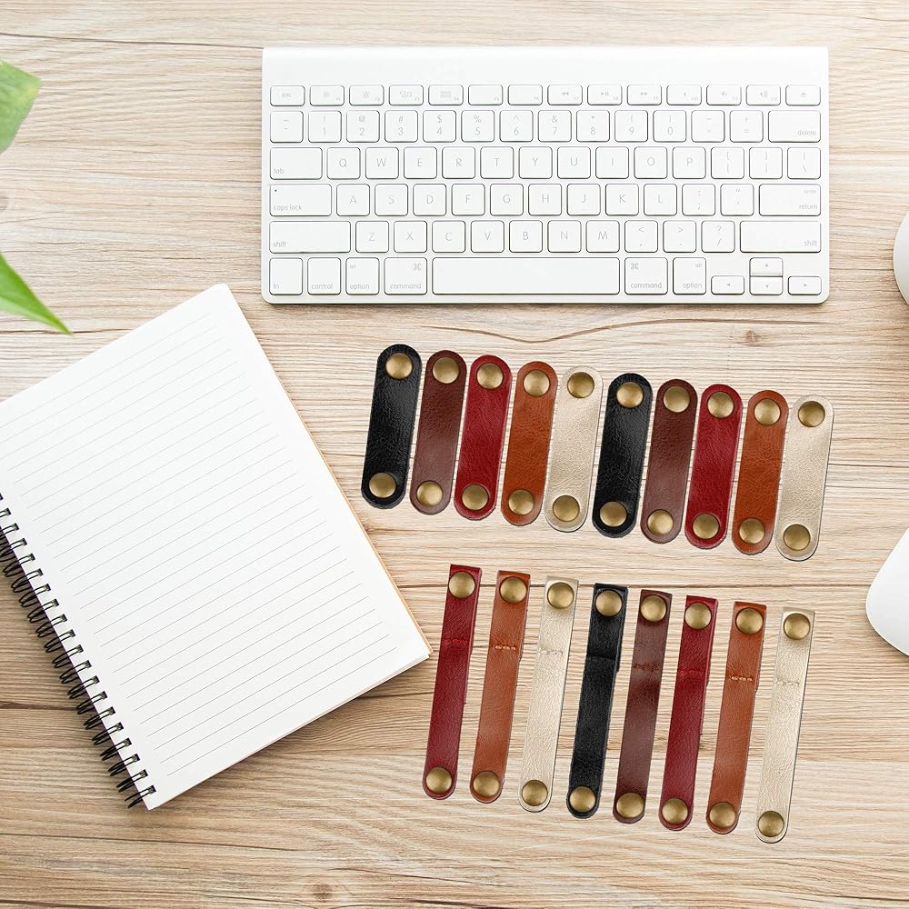 Gydandir 20 Pieces Leather Cable Straps Cable Ties Cable Organizers Cord Management for Organizing USB Cable Headphone Wires, 2 Sizes 5 Colors (Black, Brown, Light Brown, Wine Red and Gold)