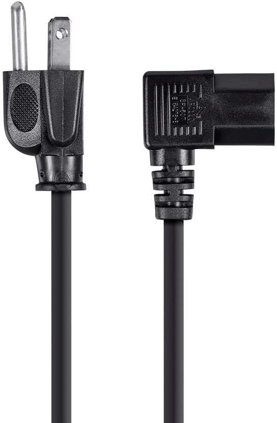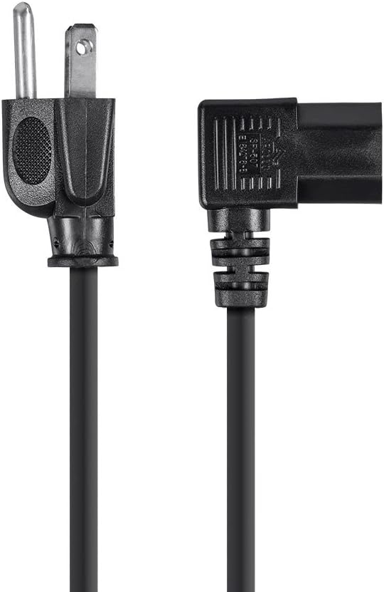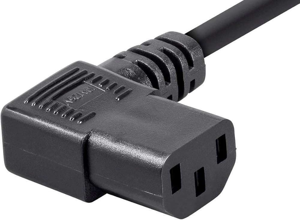 The North America NEMA 5-15 plug to IEC 60320 C13 female connector power cord works with most PCs, monitors, scanners, and printers. The angled power cord features a 90 degree C13 connector (PC side), which allows for better placement in tight situations. They are made to the same stringent standards as are standard PC power cables with the convenience of an angled connector. Connect your computer, monitor, power adapter, or other device with a male IEC 60320 C14 panel connector to a standard US AC wall outlet. The power cord features a standard, grounded NEMA 5-15P plug on one end and an IEC 60320 C13 connector on the other end. Simply mate the female C13 connector with the male C14 connector on your device or power adapter, then plug the NEMA connector into a nearby AC power outlet, UPS, or other AC power source.