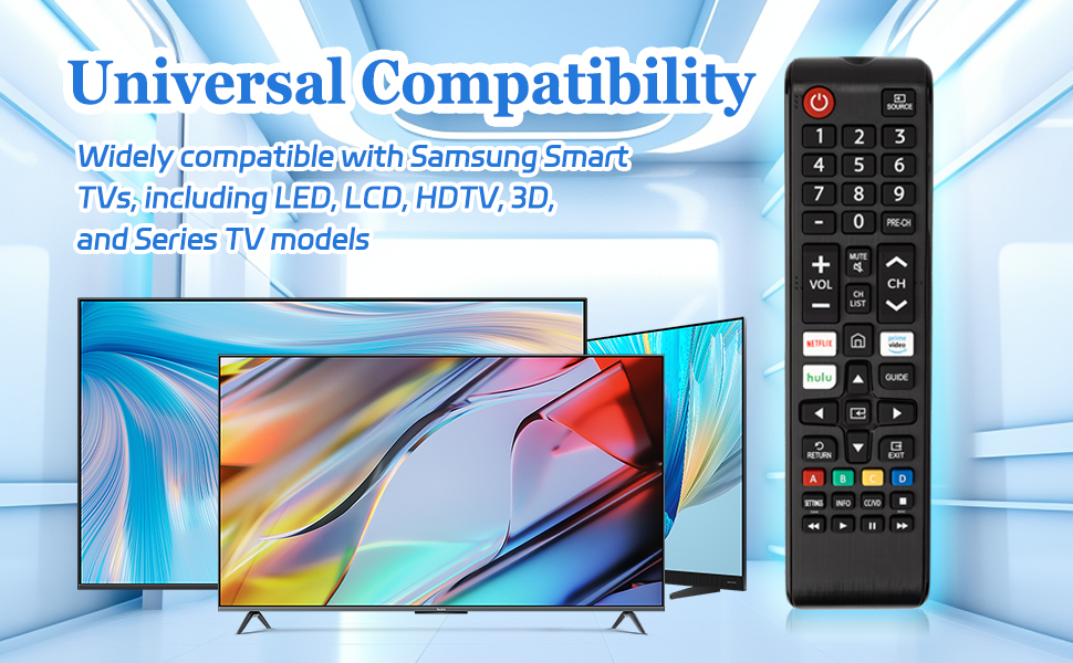 BROAD COMPATIBILITY: Designed to work with all Sammsung Smart TVs, including LED, LCD, HDTV, 3D, and Series TV models, this infrared replacement remote offers seamless compatibility and authentic functionality as advertised