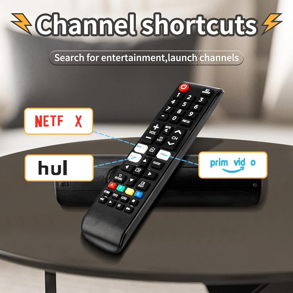 CONVENIENT SHORTCUT BUTTONS: Equipped with three shortcut buttons for quick access to your favorite channel, this universal infrared TV remote is perfect for replacing your old or damaged Samsung TV remote