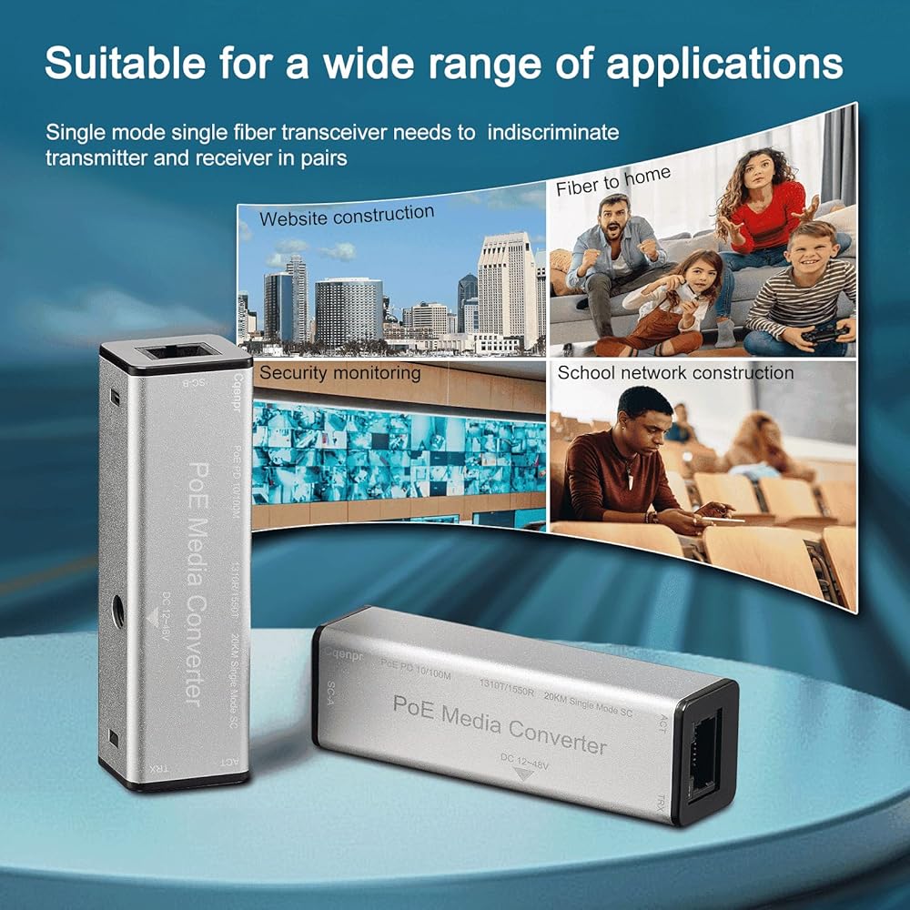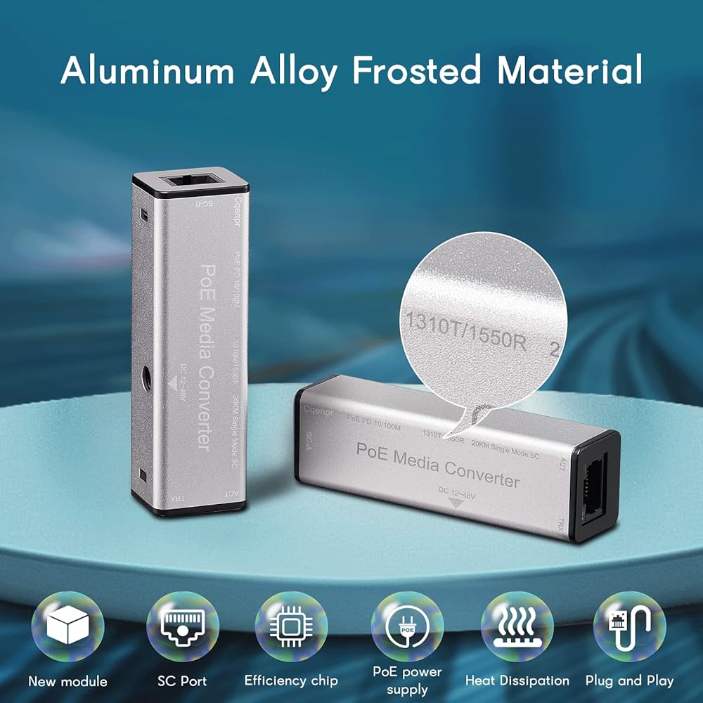 CQENPR زوج من محول وسائط Ethernet PoE، وضع أحادي SC أحادي النواة، محول ألياف PoE، 10/100 ميجابت في الثانية، مسافة نقل 20 كيلومتر، IEEE802.3u، التوصيل والتشغيل (10/100 ميجابت في الثانية)