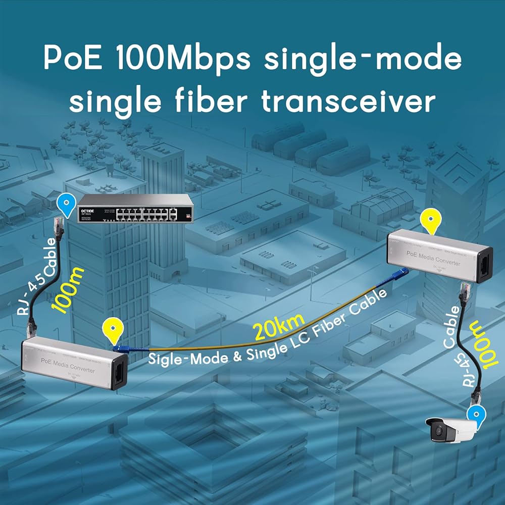 واجهة الألياف: وضع واحد SC، نوع الألياف الضوئية: وضع واحد 9/125um، معدل النقل: 100 ميجا بت في الثانية، مسافة الإرسال: 20 كجم.