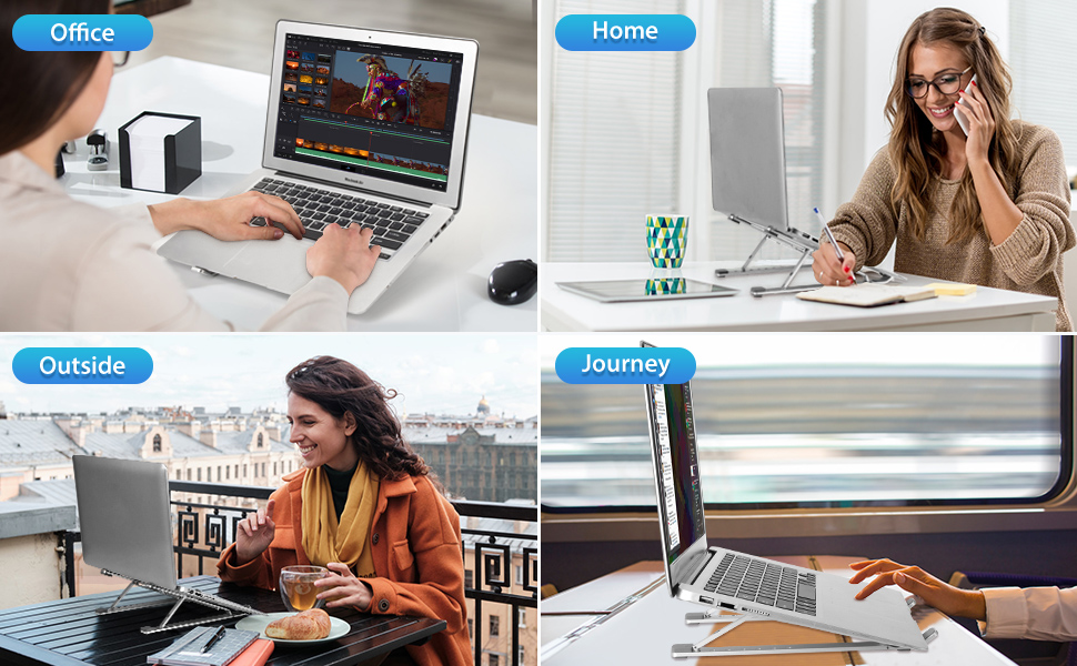 [Adjustable Angle] 7 adjustable angles, comfortable posture helps you to avoid shoulder and neck pain during prolonged use of the computer for work or study. This adjustable laptop stand's rear adds more vertical angles for tablet phone for better vedio watching or chating.