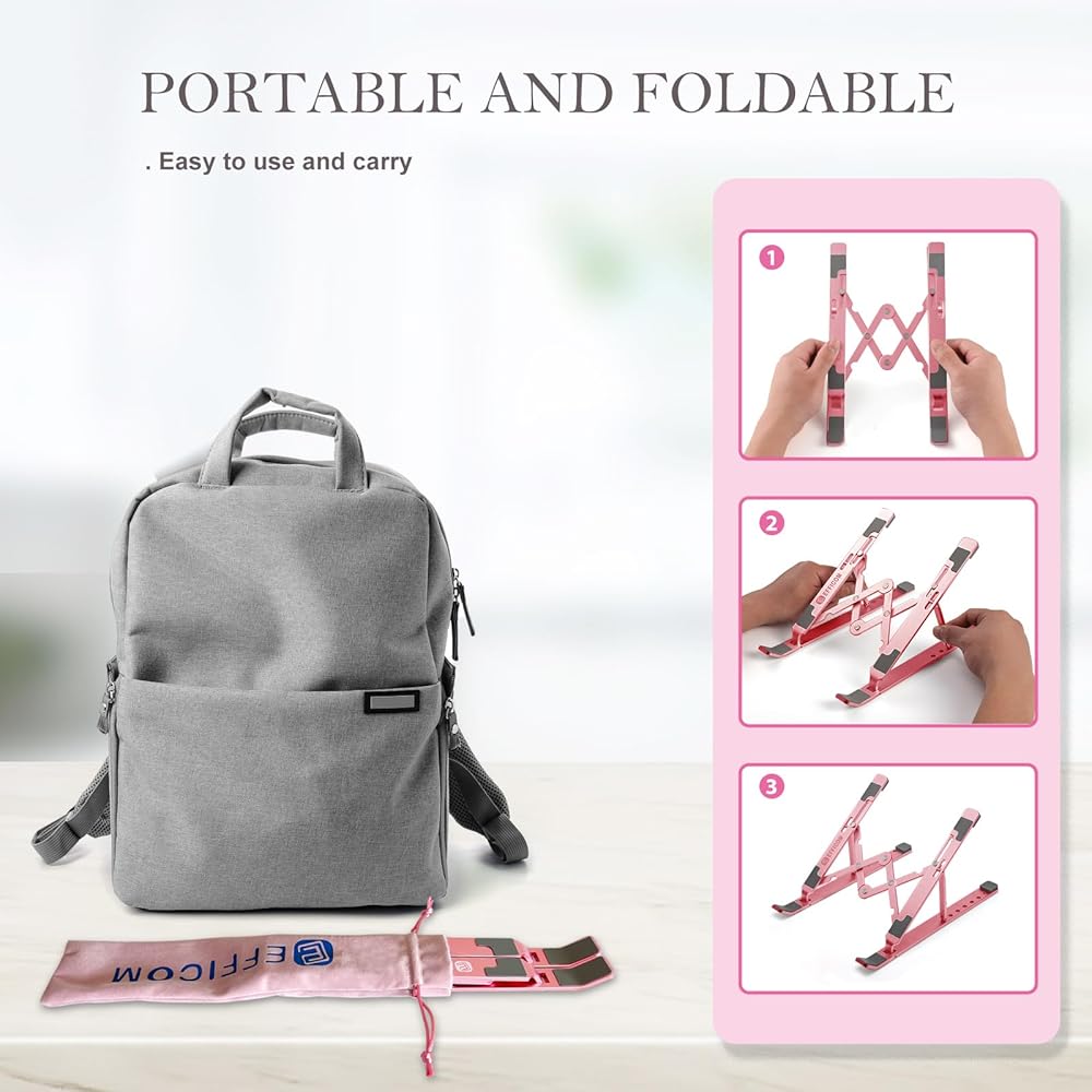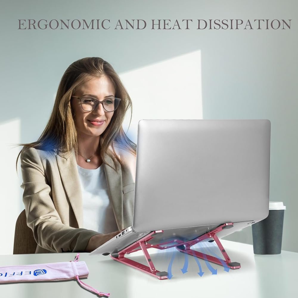 Laptop Stand for Desk, Ergonomic Lap Riser, Portable Laptop Stand, Aluminum Lightweight Foldable Notebook Support, Compatible with Laptop 10-15.6'' and Tablet, Phone (Pink)