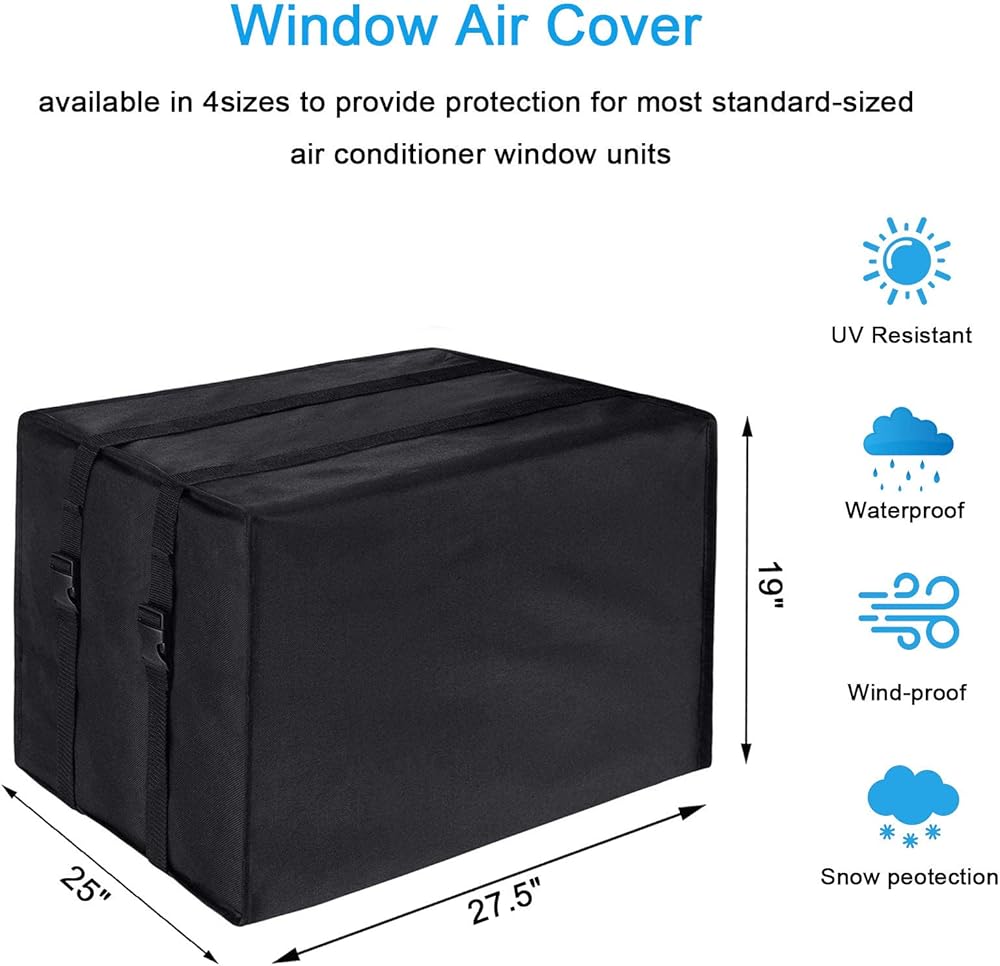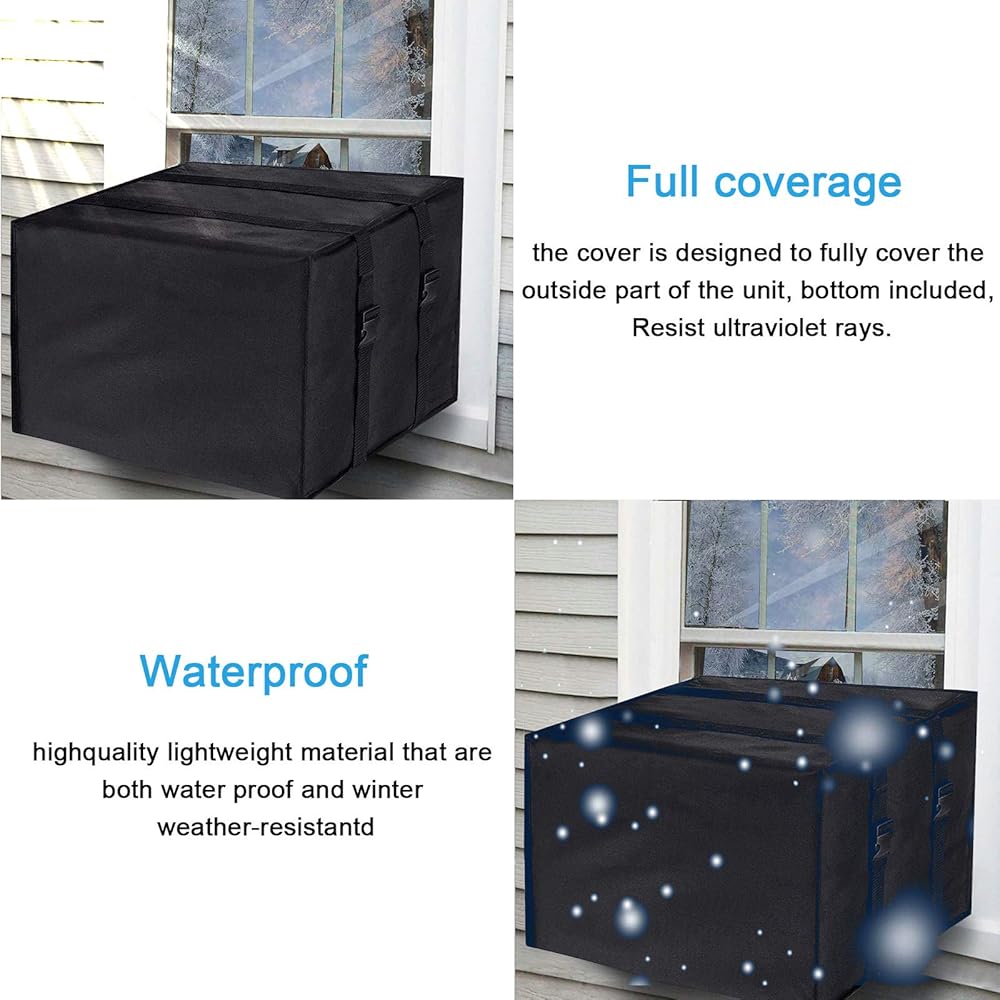 • 【600D Waterproof Material】:Made of heavy-duty, waterproof 600D polyester,prevent the accumulation of rain and snow, protecting your AC window unit from rust and corrosion.
