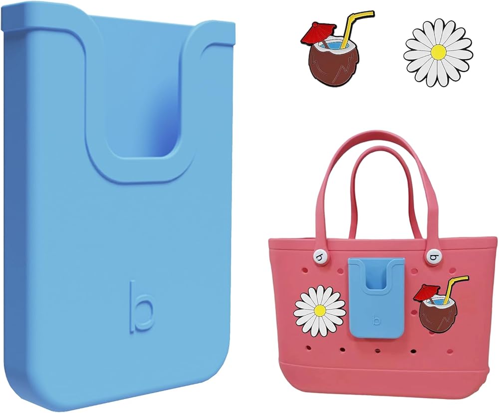 EASYDOG Silicone Phone Holder Compatible with Bogg Bag, Soft Silicone Charm Insert Accessories and Attachment for Bogg Beach Bags, Generic Portable Size Fits for iPhone and Android Phones Blue