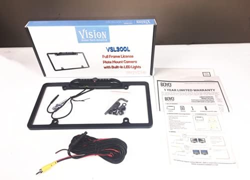 license plate frame mounting: the vsl300l backup camera features an integrated license plate frame which mounts around your vehicle's rear state license plate (mounting hardware is included).