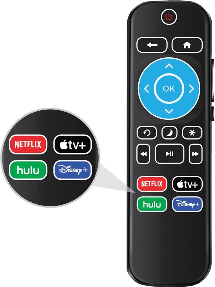 Replacement TV Remote for All Roku Series TV, it is Compatible with TCL Roku TV, Hisense Roku TV, Onn Roku TV, Sharp Roku TV, Element Roku TV, Westinghouse Roku TV, Philips Roku TV, Insignia Roku TV, JVC Roku TV, RCA Roku TV, Hitachi Roku TV and Sanyo Roku TVs and more.