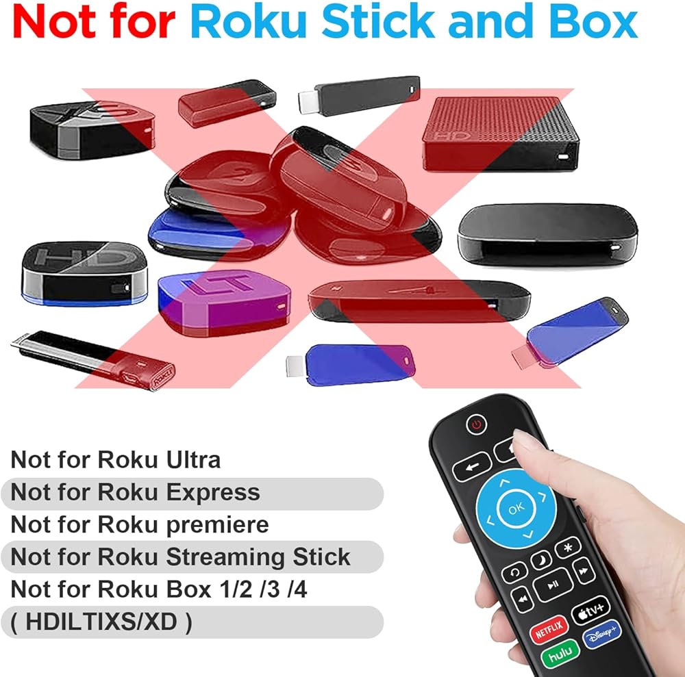 It is NOT compatible with any Roku Stick, Roku Streaming Stick, Roku Box 1/2/3/4(HD/LT/XS/XD), Roku Ultra, Roku Express, Roku Premiere or Roku Players