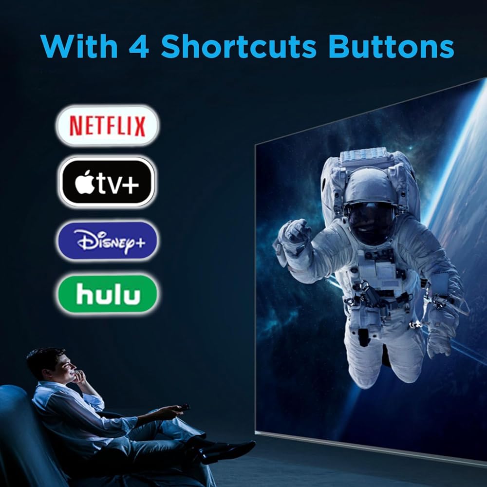 New designed replacement remote control comes with 4 popular shortcut buttons. One key quickly connected for NETFLIX, hulu, Disney+ and for Apple TV+. Significantly elevate the entertainment of your TV time.