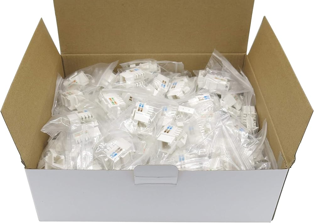 Cat5e RJ45 Modular Keystone Jack, 110 Style, White - Box of 100
