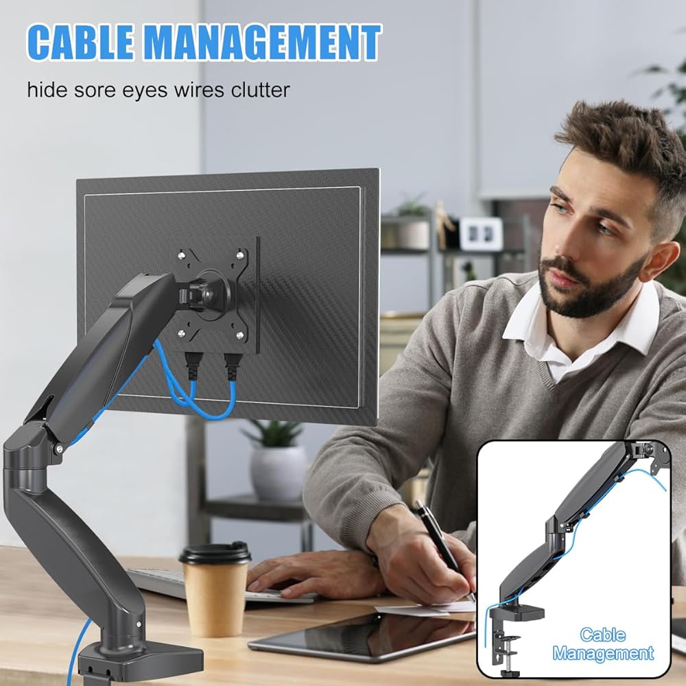 يعد حامل الشاشة الفردي القابل للتعديل المزود بزنبرك غاز الحل الأمثل لأولئك الذين يتطلعون إلى تحسين مساحة عملهم. مناسب للاستخدام في المنازل والمكاتب والفصول الدراسية وغرف المؤتمرات، حامل المكتب الخاص بنا متوافق مع مجموعة واسعة من أحجام وأوزان الشاشة.