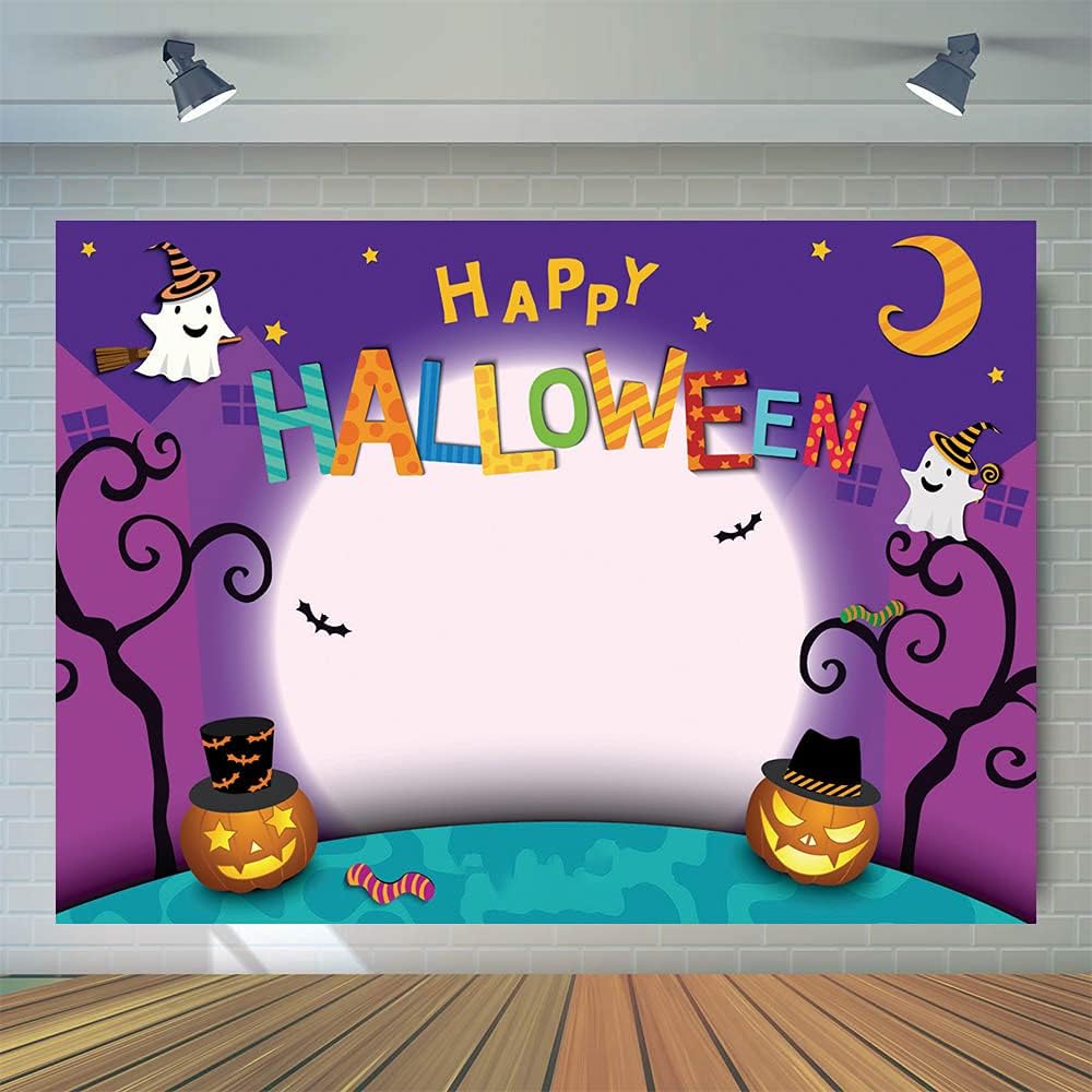 WOLADA 7x5FT كارتون الهالوين خلفية الصورة اليقطين القمر خلفيات التصوير الفوتوغرافي حفلة الهالوين راية خدعة أو علاج خلفية ديكور الهالوين للأطفال حفلة الهالوين خلفية التصوير الفوتوغرافي 11131