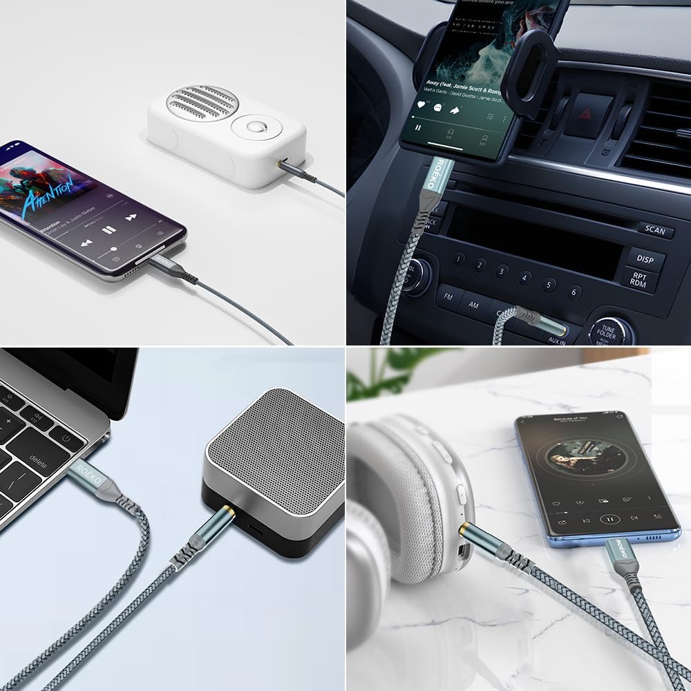 This USB C to 3.5mm aux cable cord can easily connect your Type C devices to car stereo, home stereo, speaker, headphones or any device with standard 3.5mm audio jack or Aux-in port and offers you the freedom of listening to music.