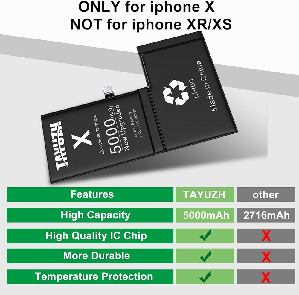 😀Are you having a horrible time with your battery for iphone X? Is it no longer taking a charge or is draining to quickly? The more you use the device, the more capacity of your battery will be reduced. There's no need to worry. TAYUZH battery replacement for iphone X will remedy the problems you are meeting, Let yourConsole back to life, so that you can play longer games.