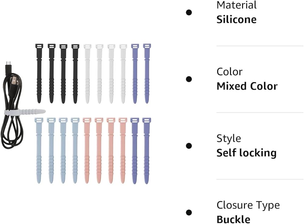 Package Content: You will receive 20pcs elastic silicone cord organizer straps to organize charging cables, USB cables, earphones line, pens, key chains.