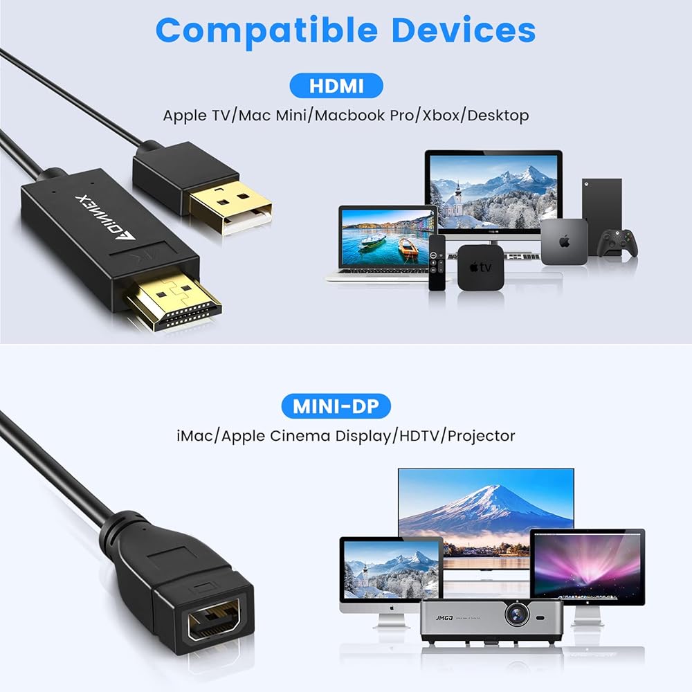 【Compatible Devices】HDMI to Mini Displayport adapter connects computer,desktop,laptop, ultrabook, notebook, Chromebook, Raspberry Pi, Intel Nuc, Roku, PS3, Xbox One, Xbox 360, Wii U, Set Top Box, TV BOX, or other devices with HDMI port to a projector, HDTV, or monitor with Mini DP port such as Apple Cinema Display(24/27 inch) ,iMac 2009/2010, Dell MDP Monitor.