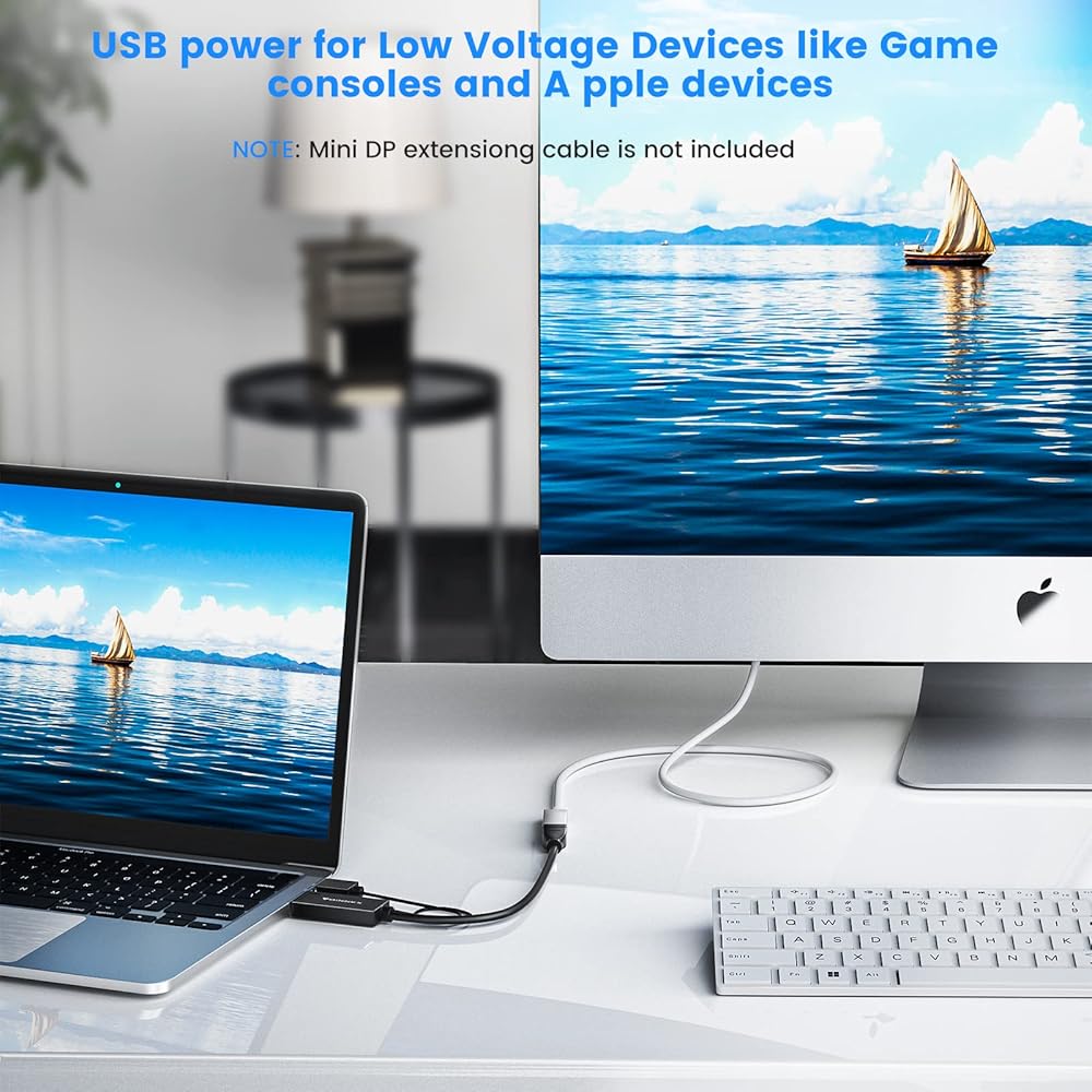 【Active HDMI to Mini DP Adapter】HDMI to Mini Display port adapter/converter hook up computer/laptop with HDMI output to TV, monitor or projector with Mini DP port for video streaming, gaming or sharing content.Not bi-directional.Only converts signal from HDMI to Mini DP