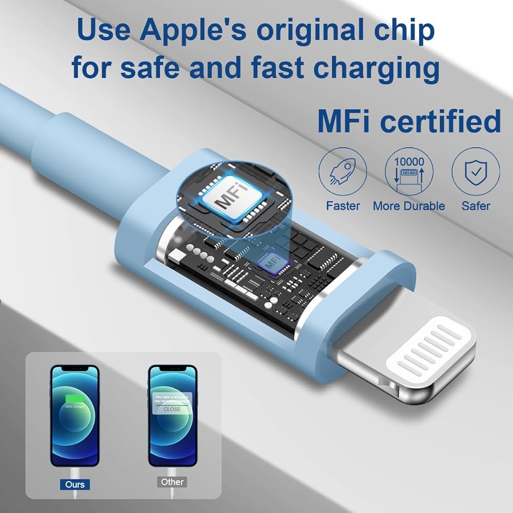 【MFi Certified Lightning Cable】 With the MFi Chip, the USB-C to lightning cable cord equips automatic chip recognition function. The MFi Certification ensures 100% flawless compatibility with devices. No more trigger warning messages.