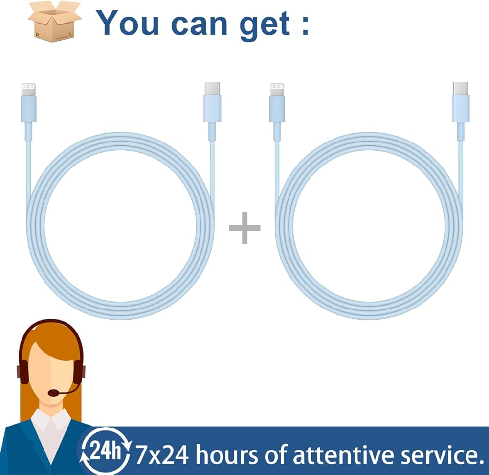 iPhone Fast Charger Lightning Cable [MFi Certified] 2-Pack USB-C to Lightning Cable (6.6Ft) Fast Charging Compatible with iPhone14/14 Plus/14 Pro/14 Pro Max/13/13pro/12/12 Pro/12 Pro Max(Blue